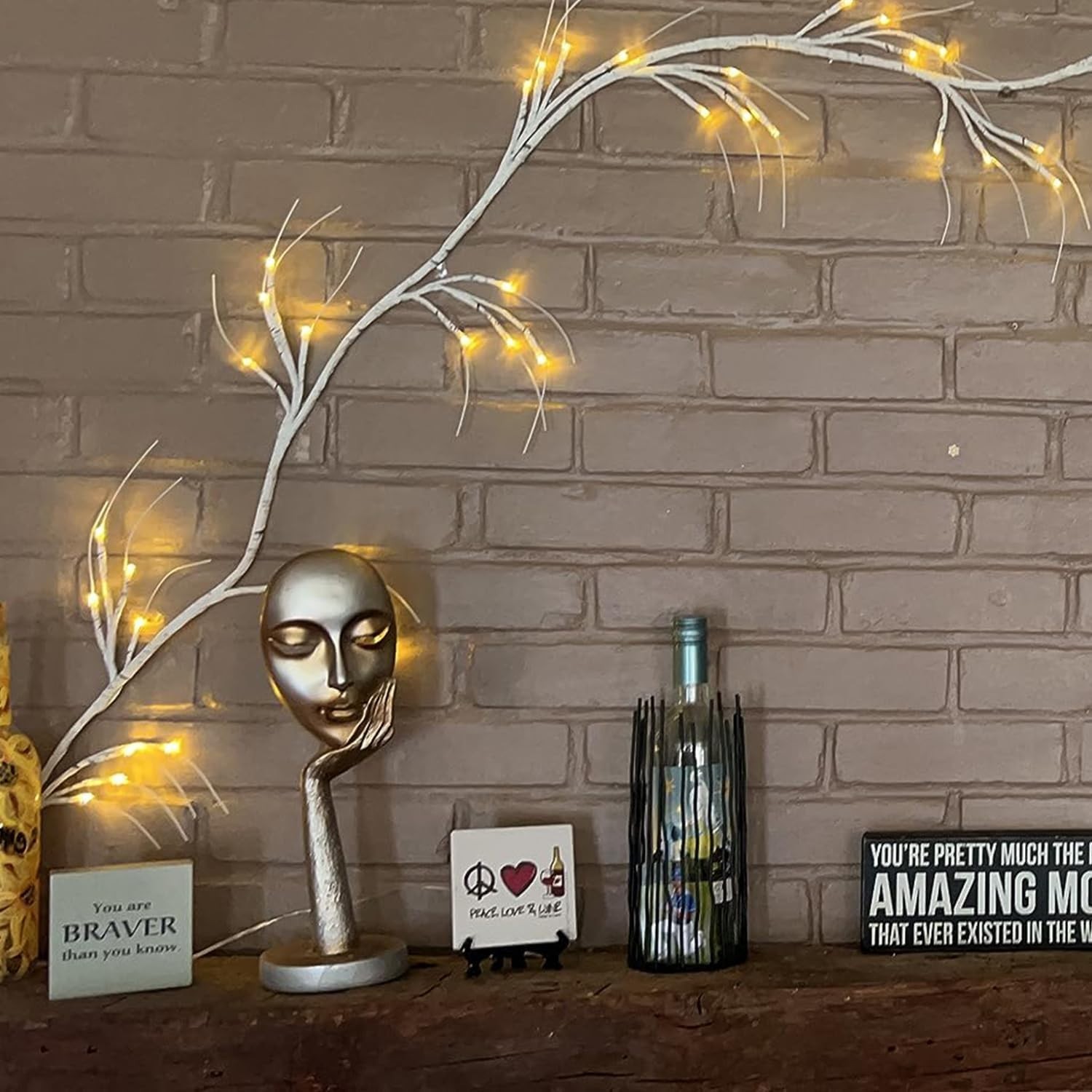 как выглядит 6FT Lighted Birch Garland with 48 Warm Lights and Timer for Indoor Decor фото