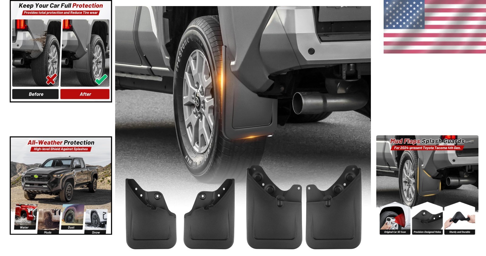 • Mud Flaps for Toyota Tacoma 2024 2025 Splash Guards No Drill Mudflaps Front Rear