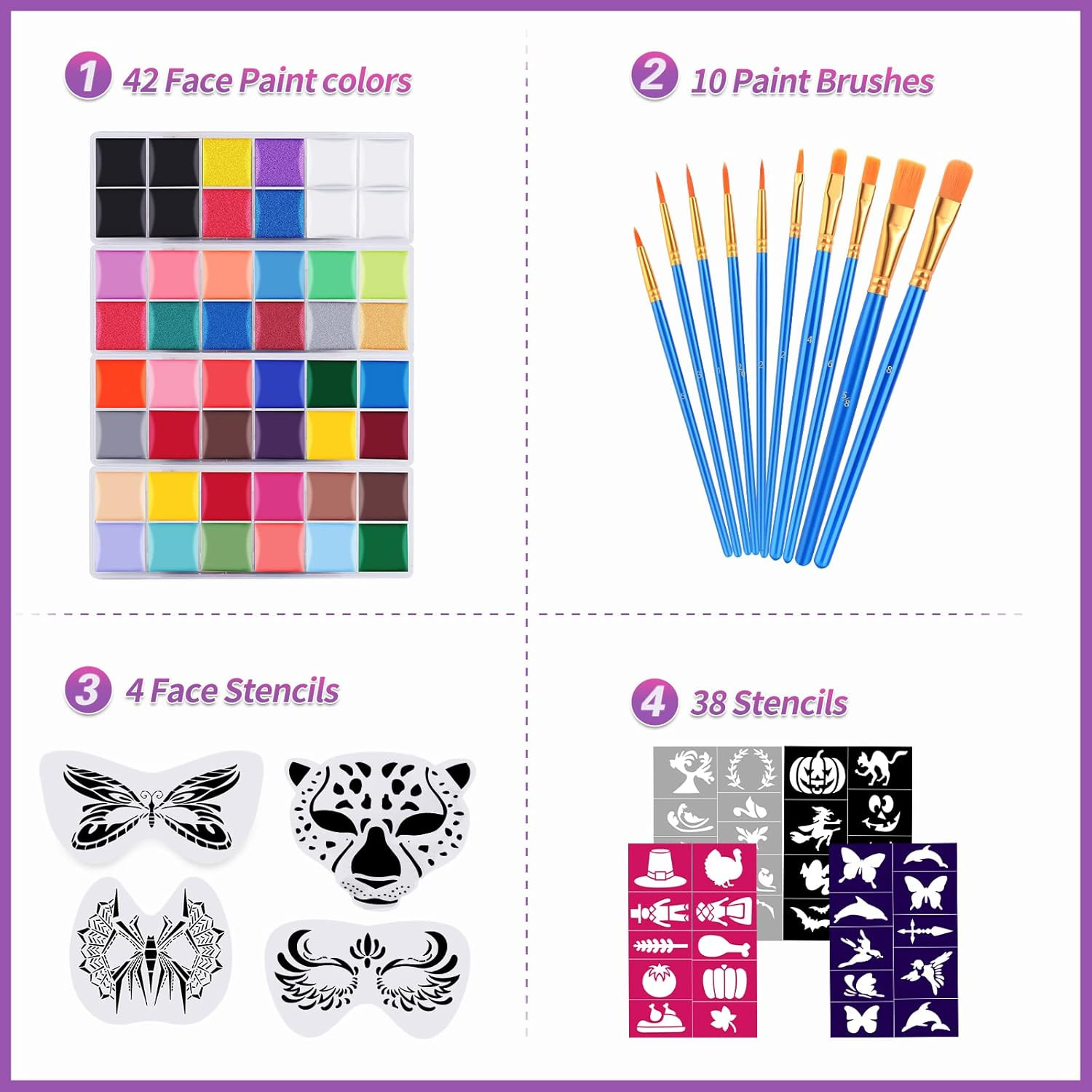 Professional Face Body Paint Kit,42 Colors Oil Face Body Paint Kit 26 Classic C