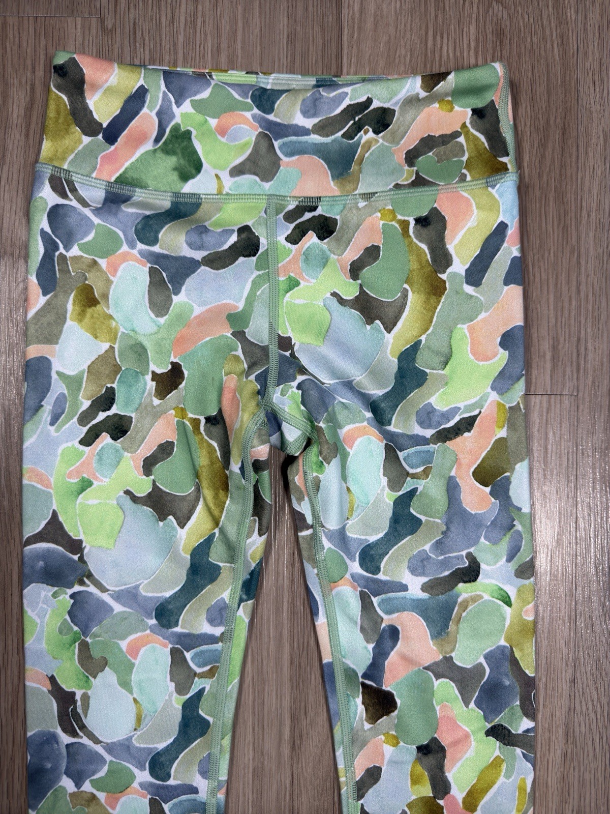 как выглядит Athleta Girls High Rise Printed Chit Chat Capri Legging Green Peach Medium 8-10 фото