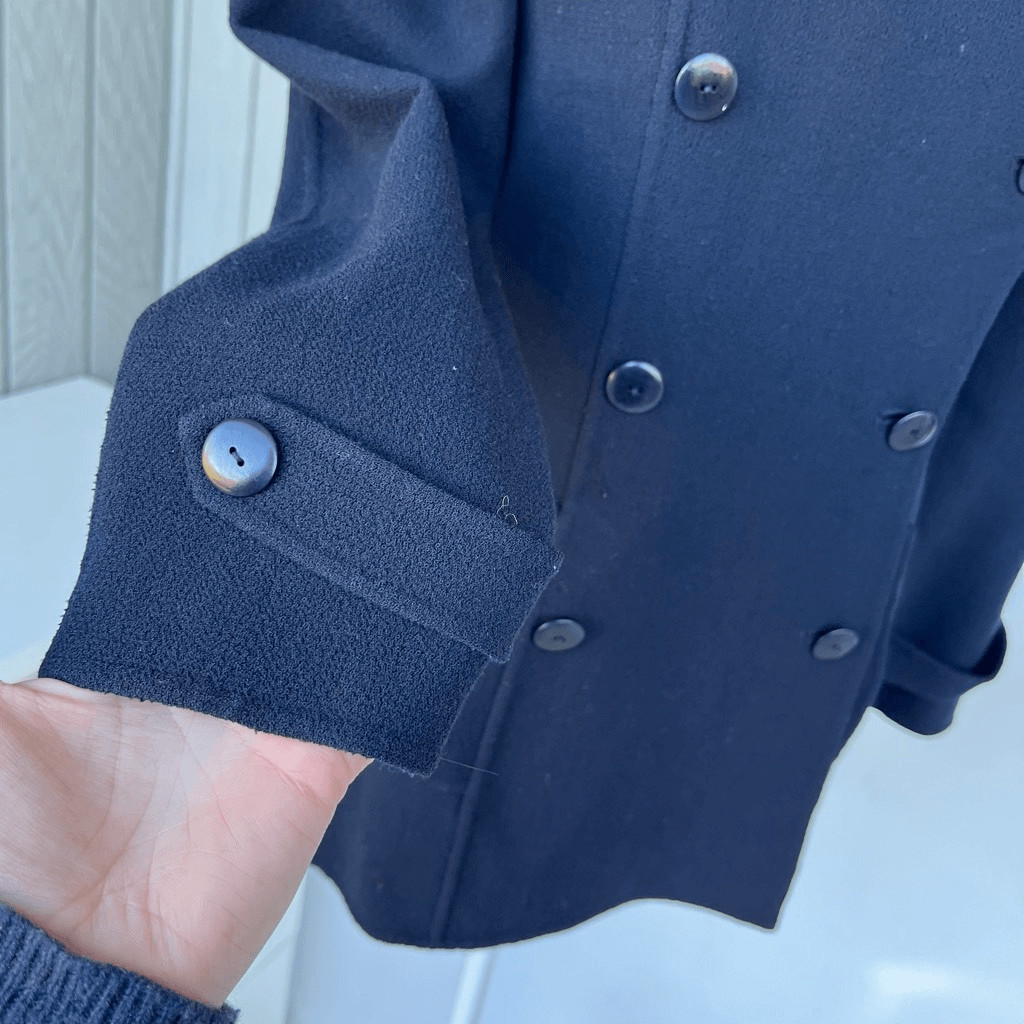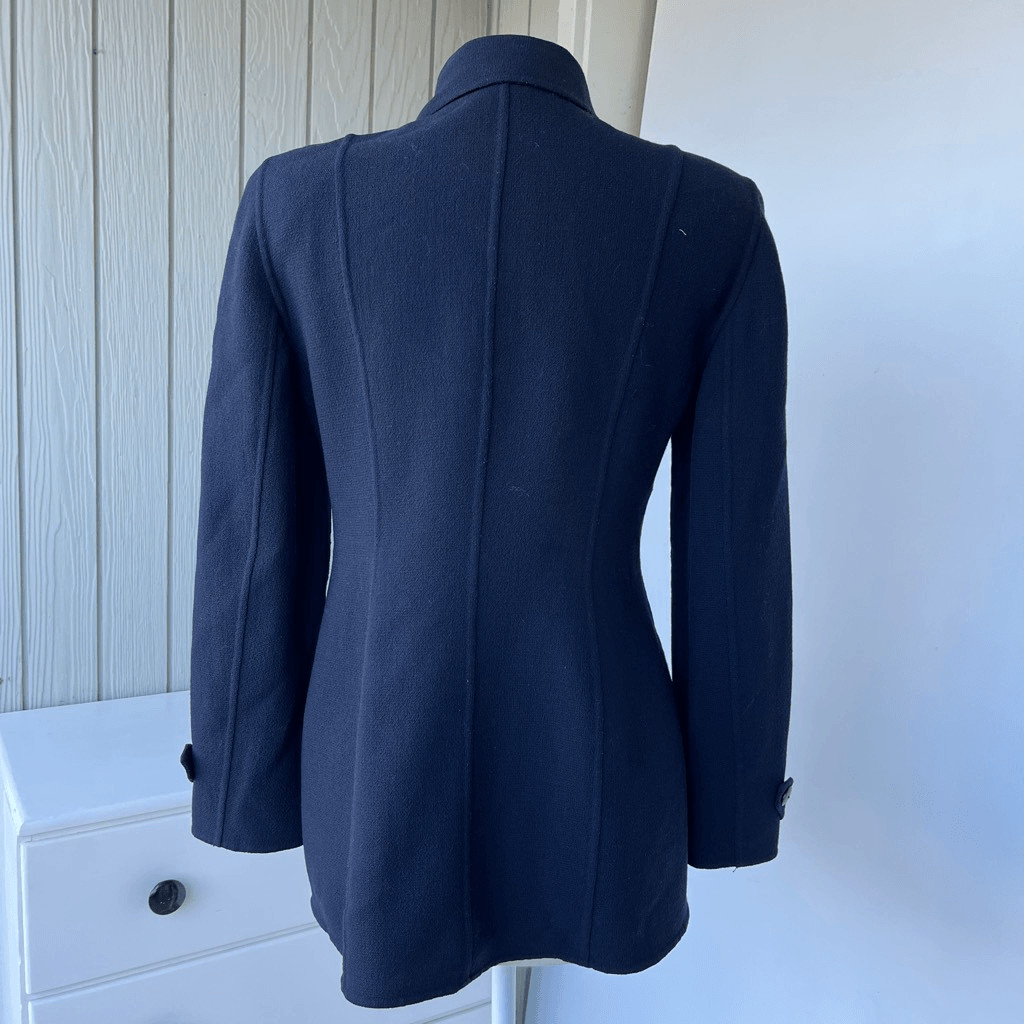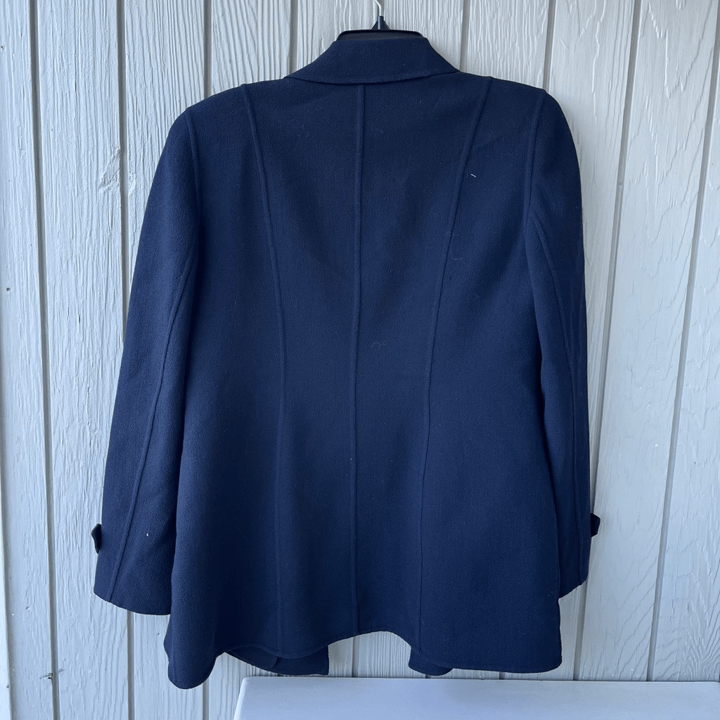 VTG Ellen Tracy Linda Allard Woven Wool Coat Blazer Navy Double Breasted SZ 6
