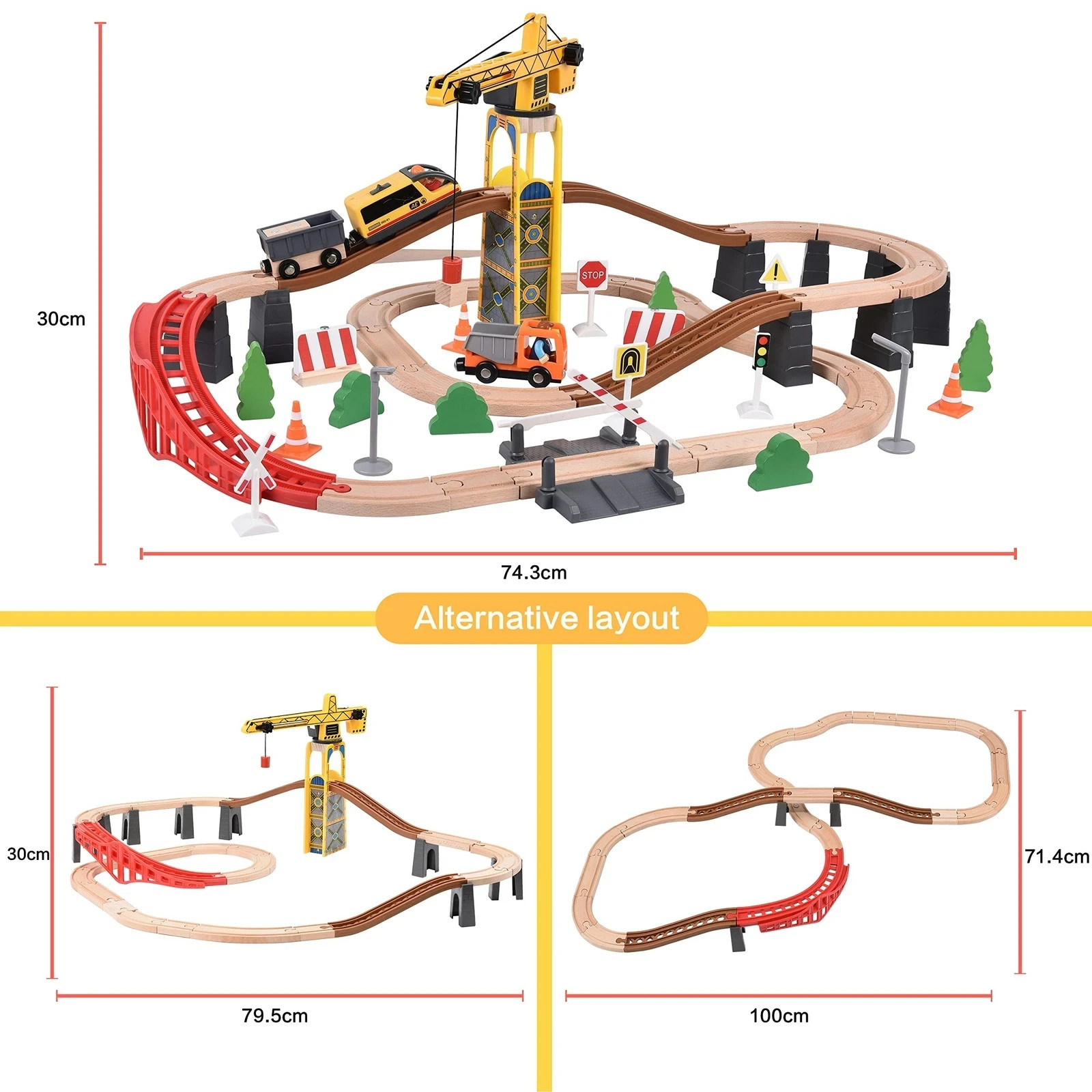 Giant bean 72PCS Tower Crane Wooden Train Set, Toy Battery Operated Train Tra...