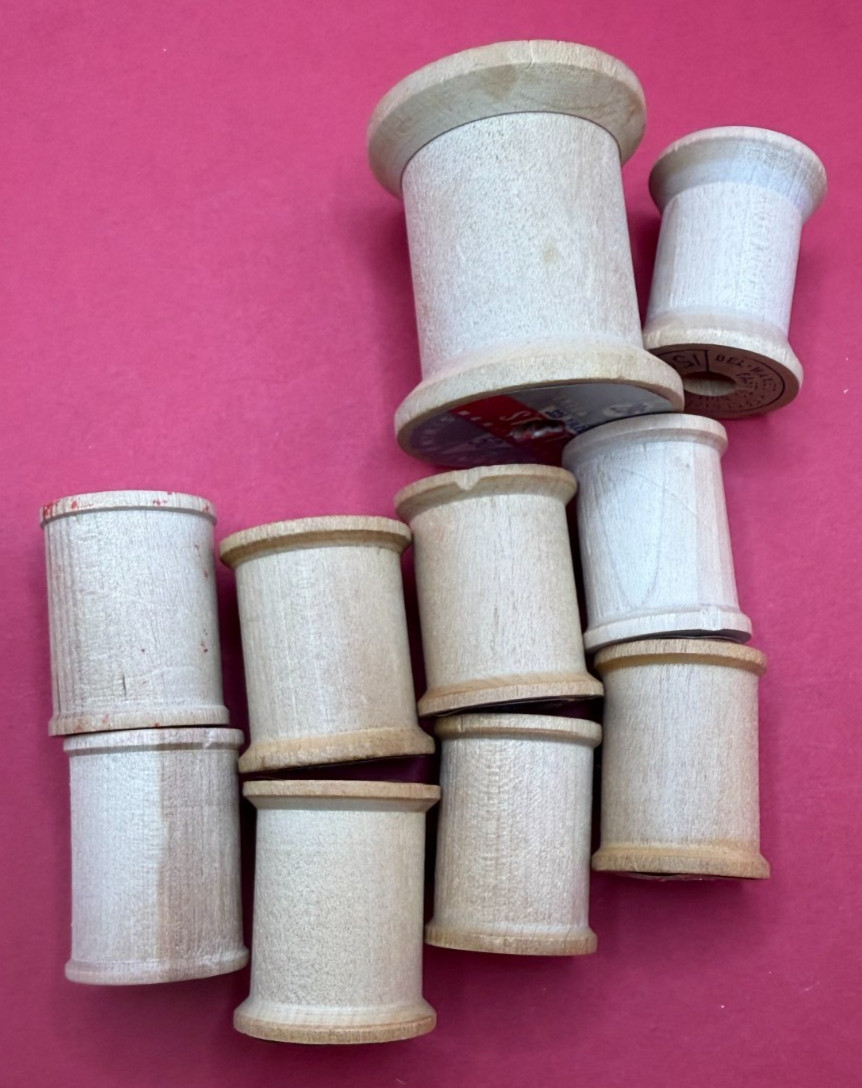 • 10 Vintage Wooden Thread Spools, Small Empty Sewing Coats Clark's, Belding