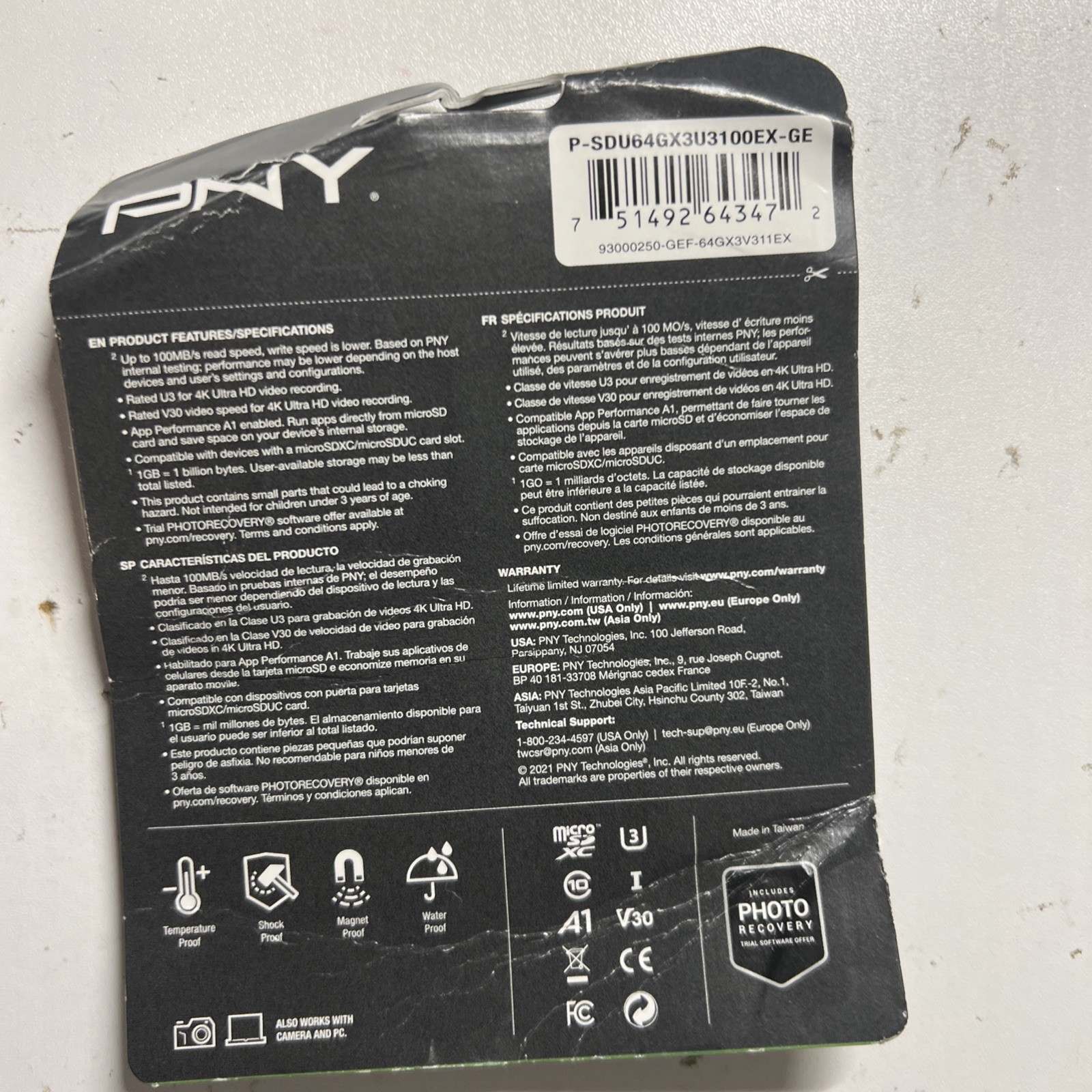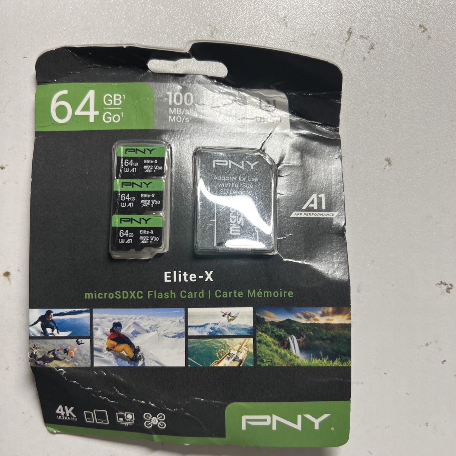 PNY 64GB Elite-X Class 10 U3 V30 microSDXC Flash Memory Card 3 Pack 100MB/s NEW