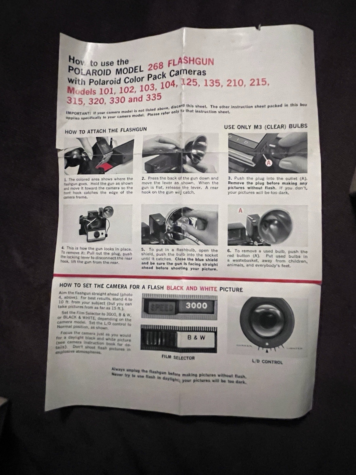 Vintage POLAROID FLASH BULB UNIT Flashgun Model 268 Land Camera Flash Untested