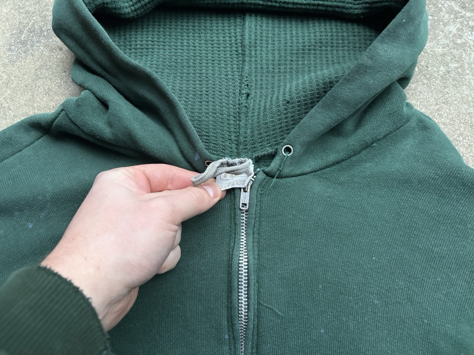 как выглядит 50s 60s double face hoodie waffle lined brent true vintage L/Xl full cotton фото