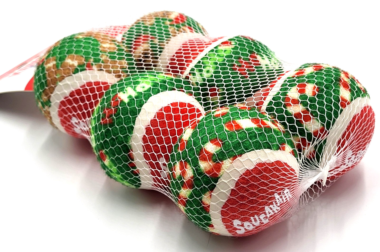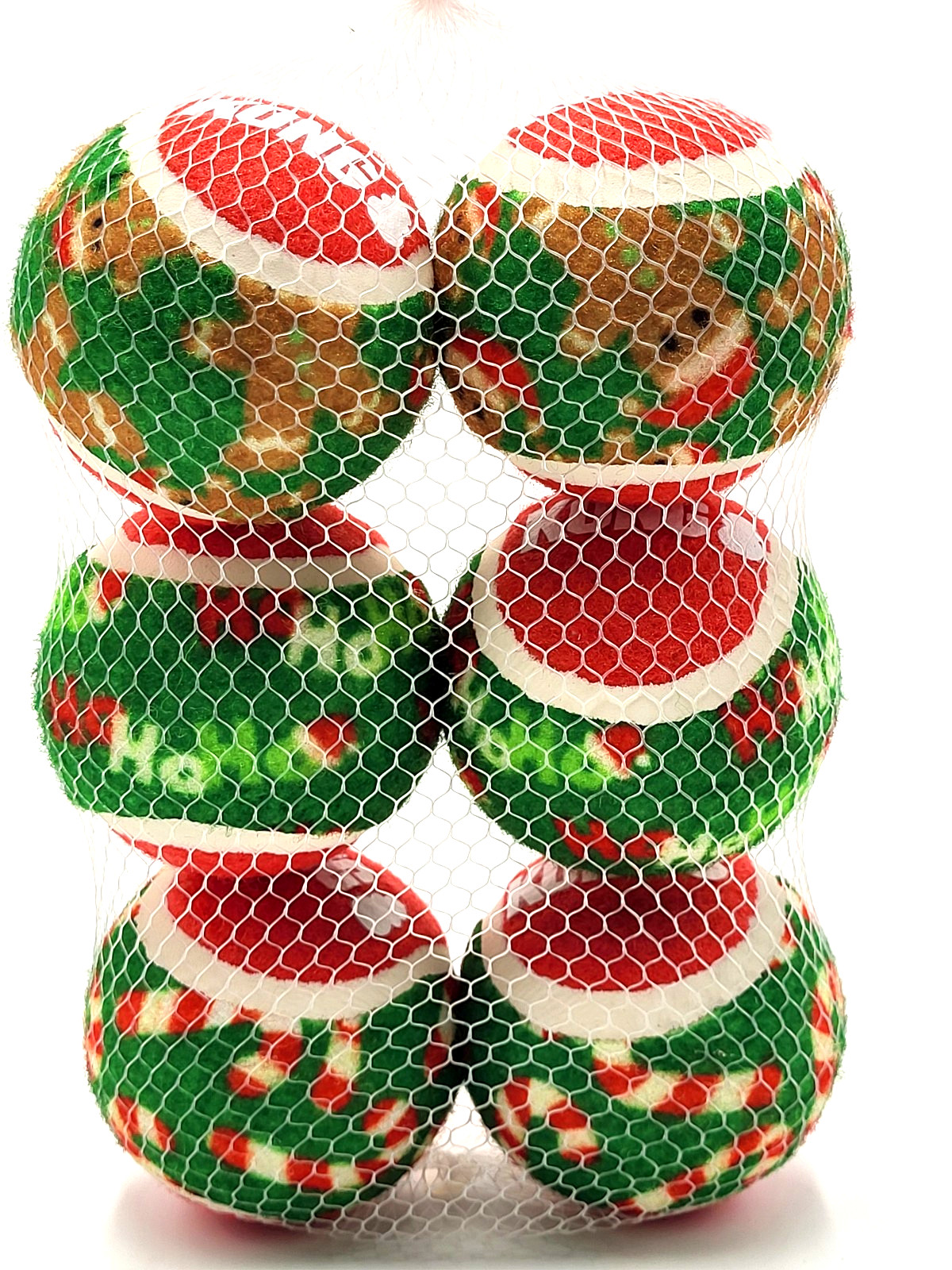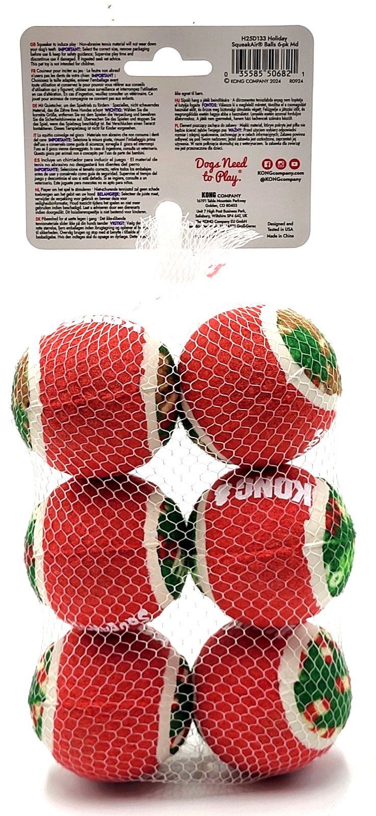KONG SqueakAir Holiday Christmas Tennis Balls 6pk Med Squeaky Dog Fetch Toy 2.5