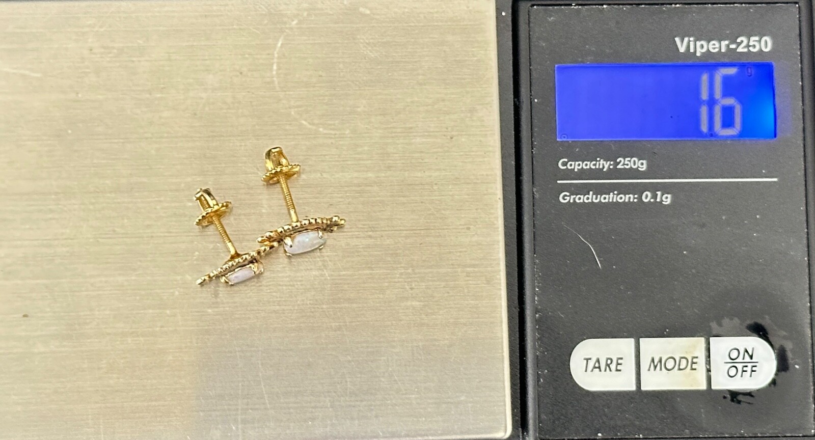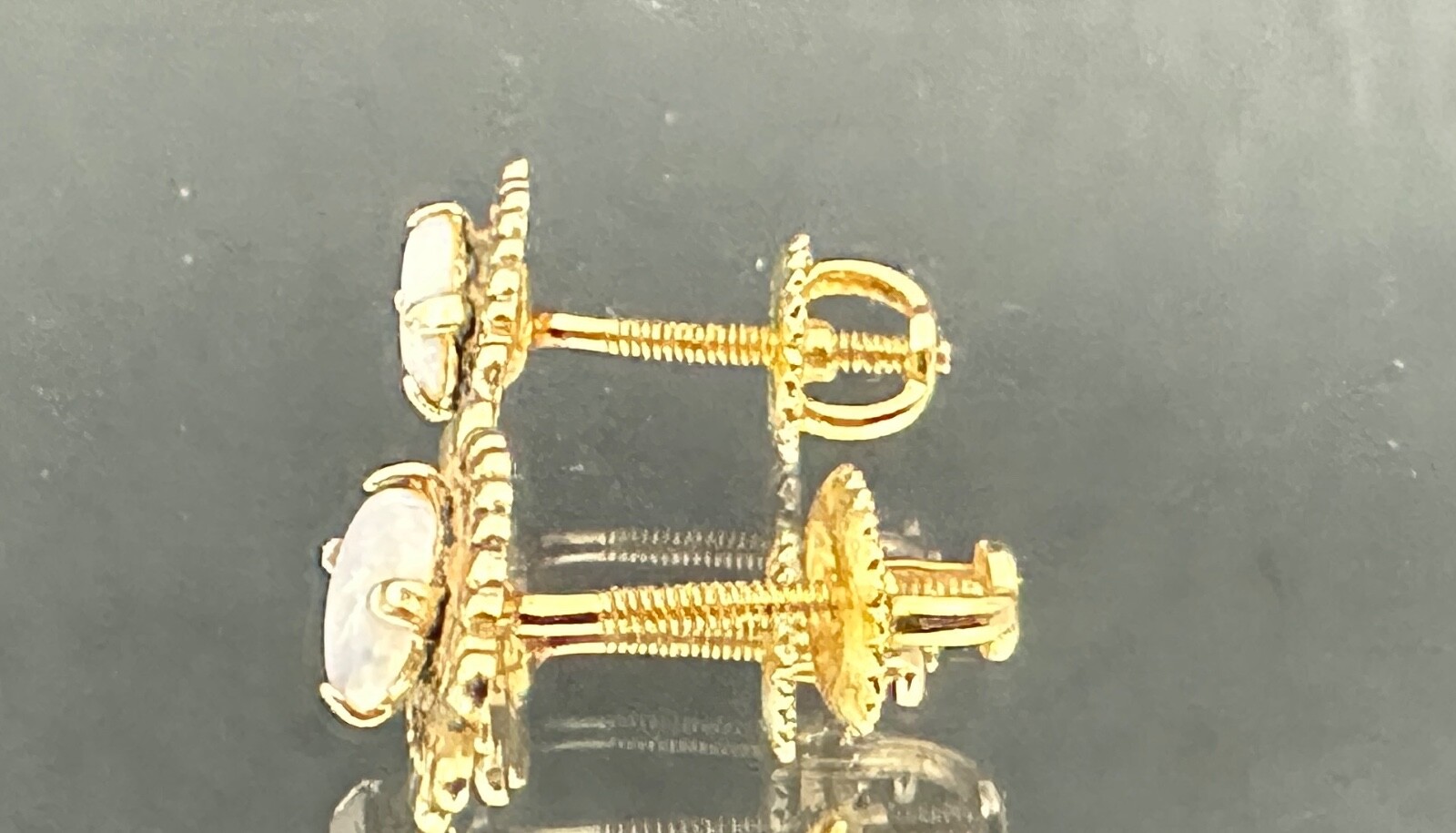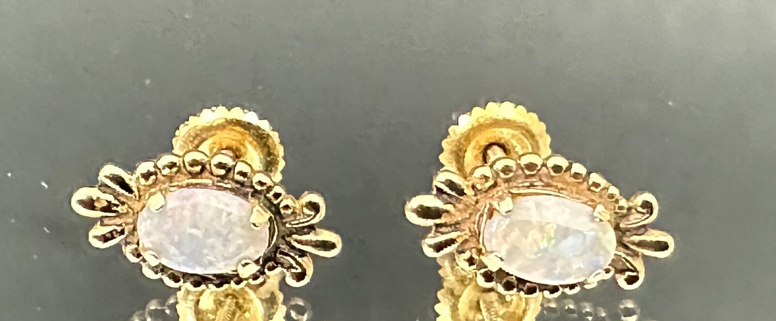 Opal set 14k Yellow Gold, Screw Back Stud Earrings