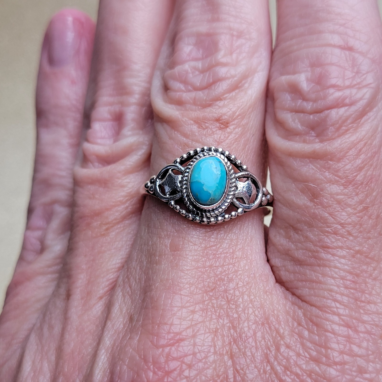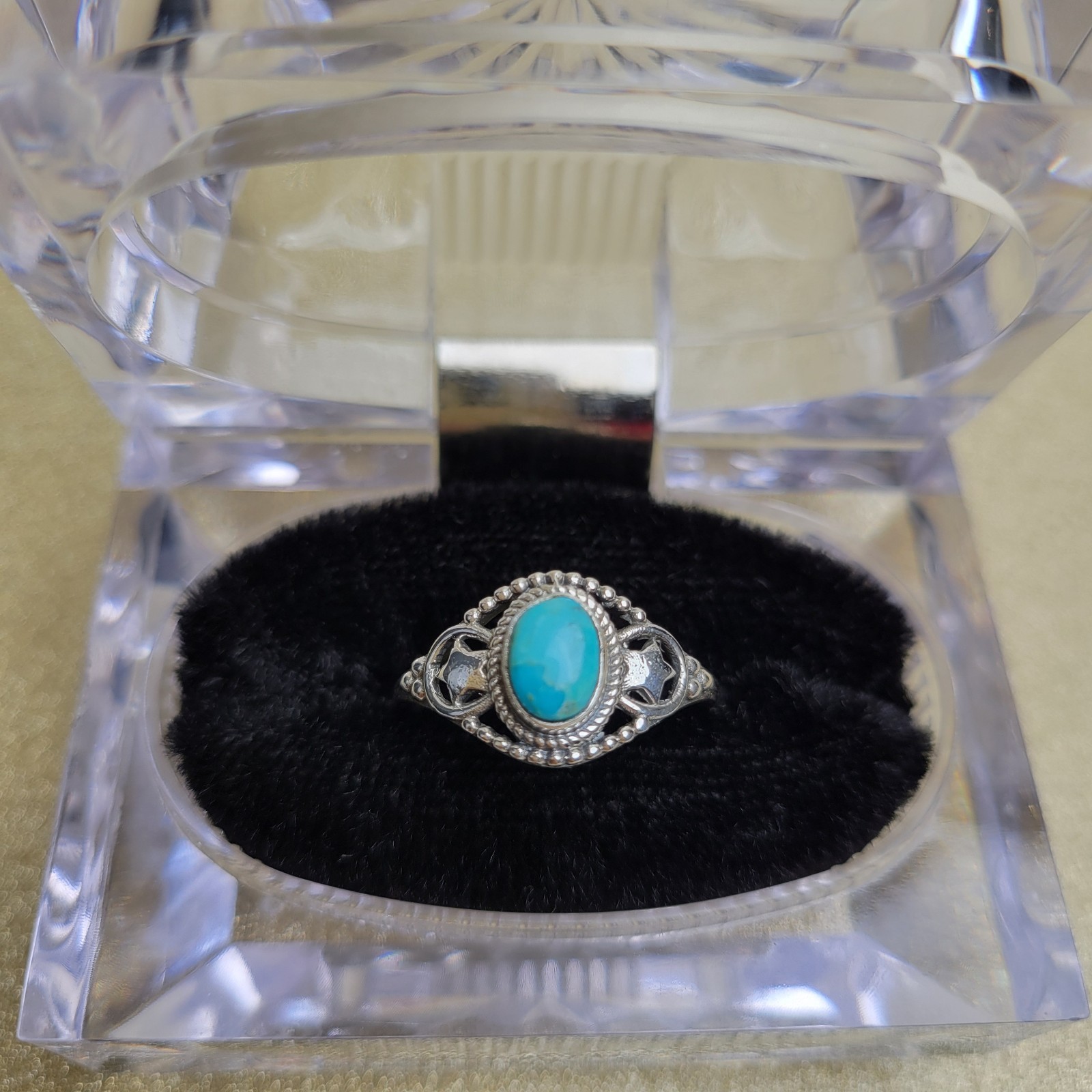 Artisan-Made Turquoise Ring W/925 Sterling Silver Star, Rope Detail. Size 9.25
