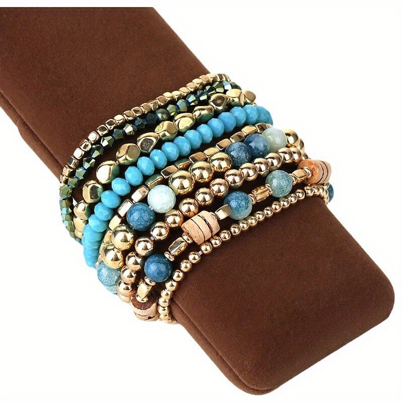 9pcs Boho Beaded Bracelet Set for Women Bead Stackable Bracelets Casual Jewelry