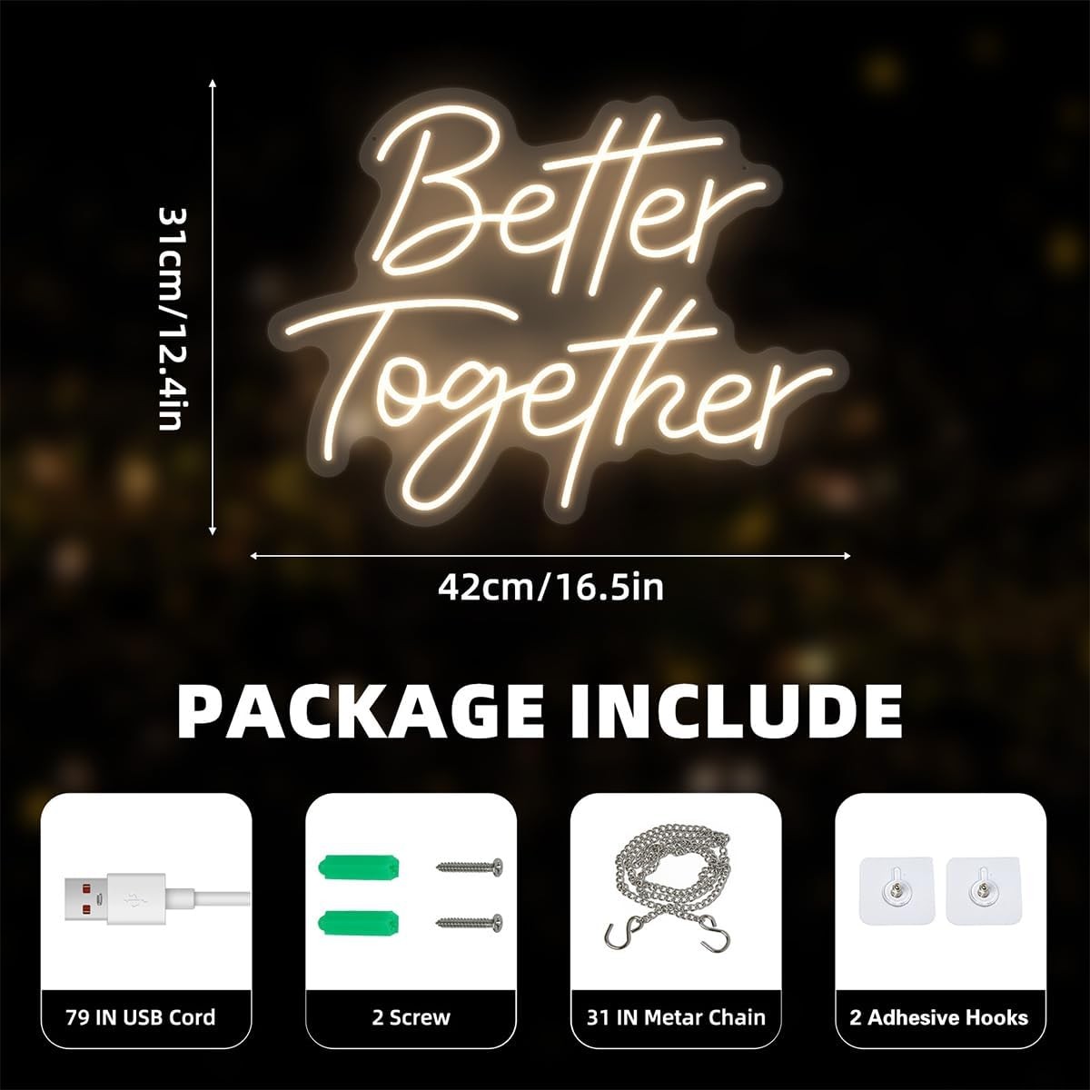 • Together Neon Sign for Wall Decor, Better Together LED Light gift for Birthday