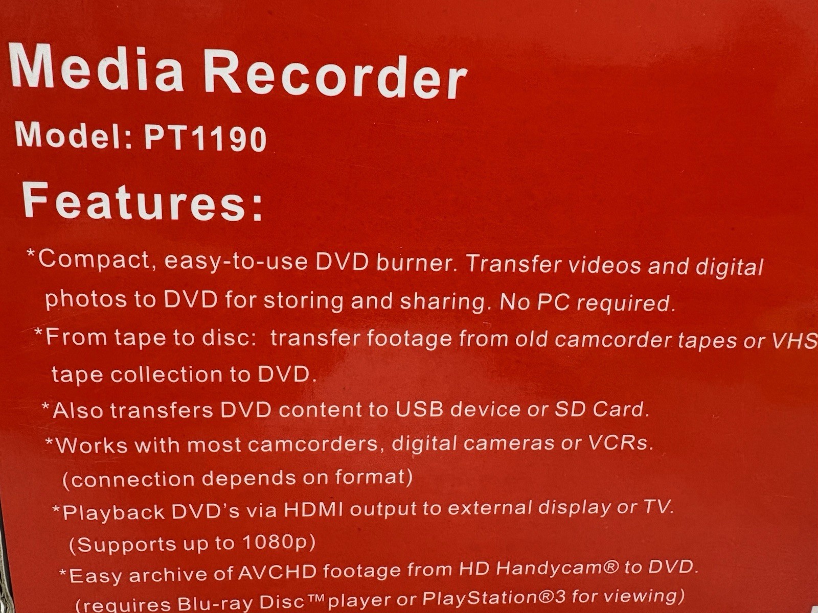 как выглядит PROTIS Multi-function Media Recorder PT1190 DVD Recorder / Player HDMI USB. NEW фото