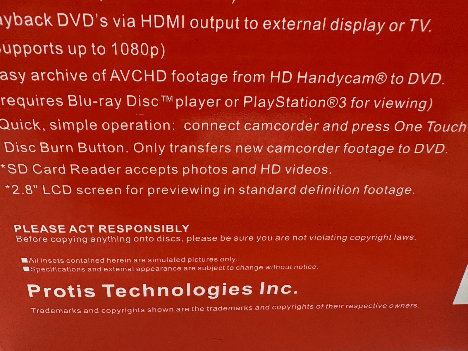 PROTIS Multi-function Media Recorder PT1190 DVD Recorder / Player HDMI USB. NEW