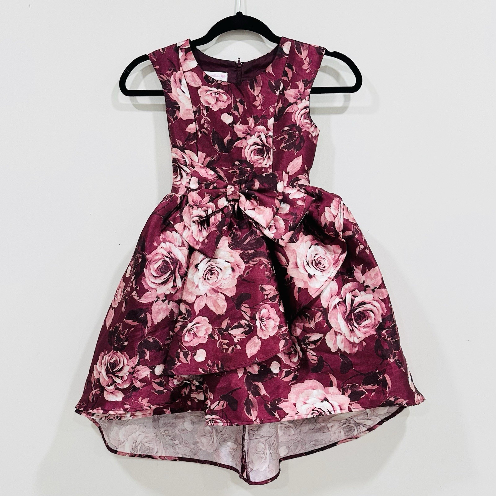 Bonnie Jean Girls Size 8 Sleeveless Burgundy Floral Special Occasion Dress
