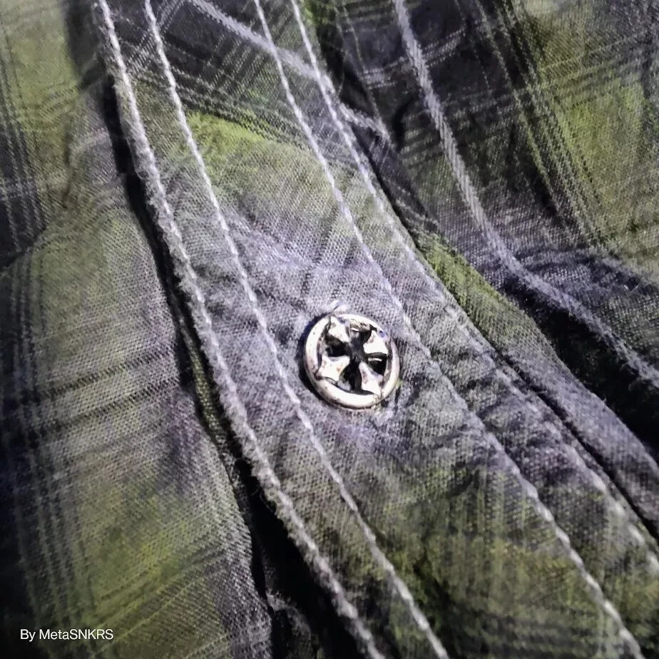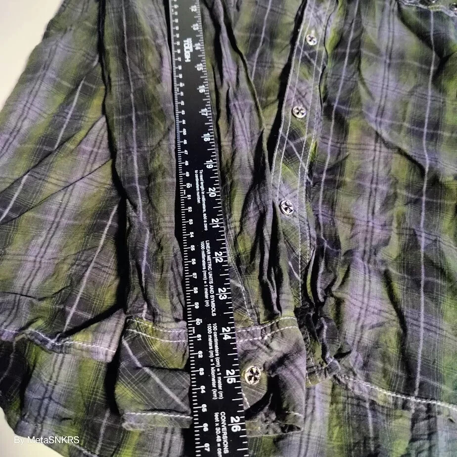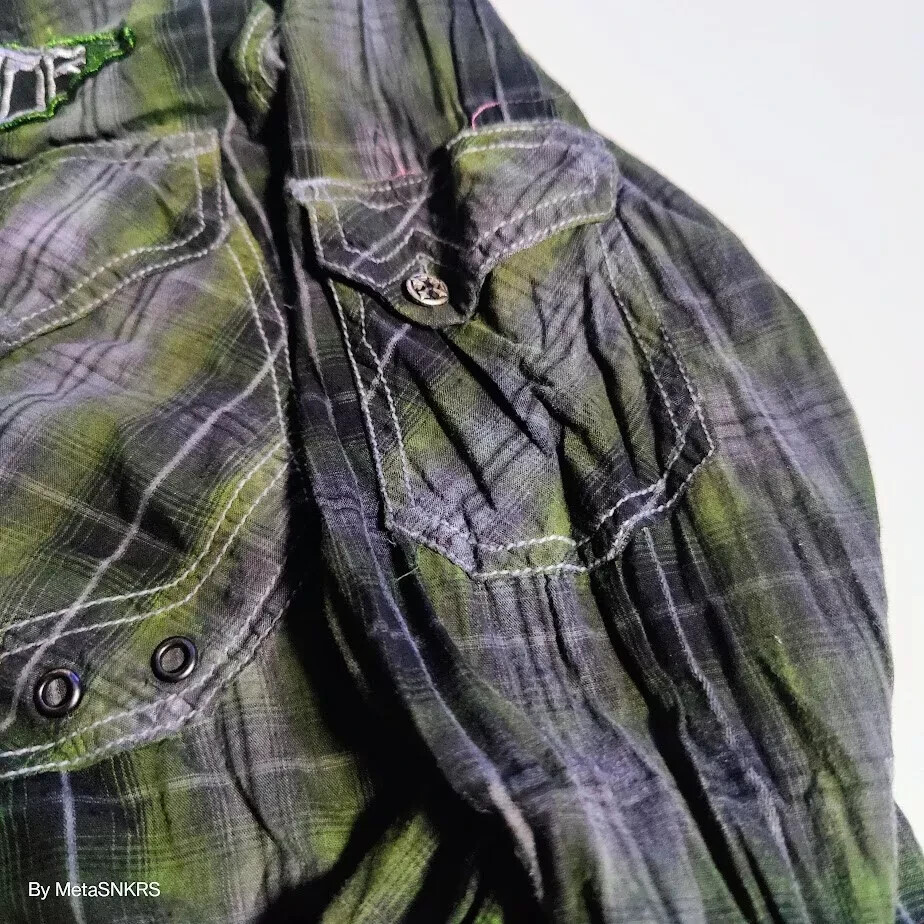 как выглядит Affliction Premium Button Up Shirt Mens XL Plaid Black Green/Grey Lifestyle Used фото