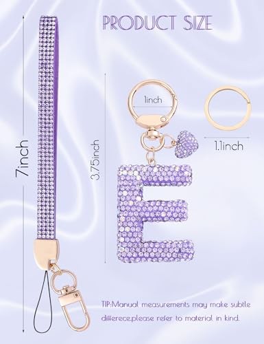 Initial Keychain for Women Girls,Bling Letter Key chain Initial with E-purple