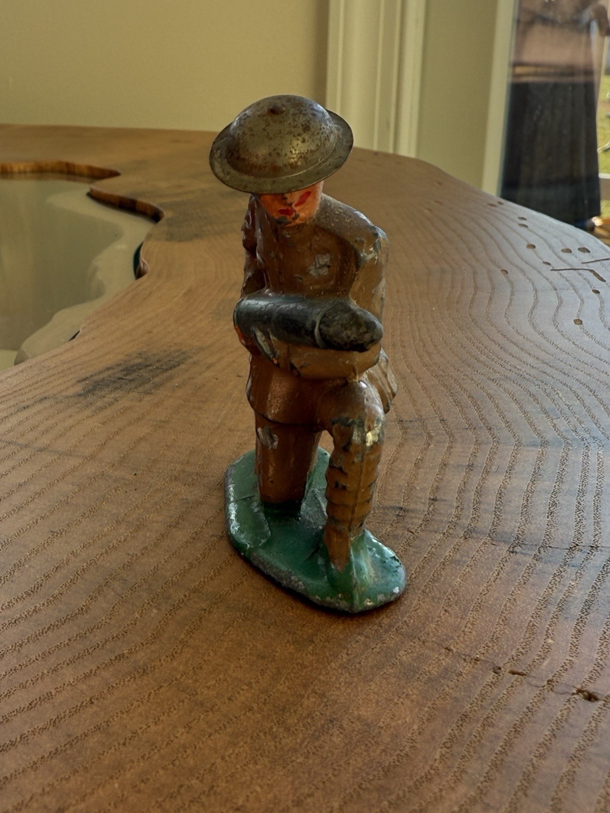 как выглядит VERY NICE 1930s BARCLAY 733 LEAD DIME STORE G.I. SOLDIER SHELL FEEDER фото