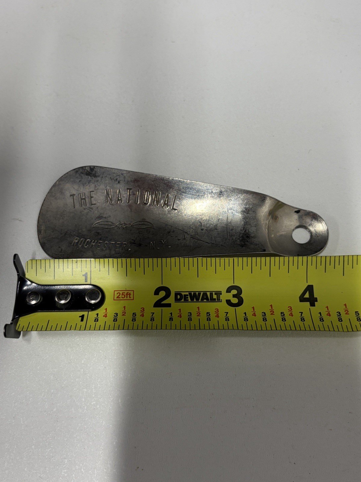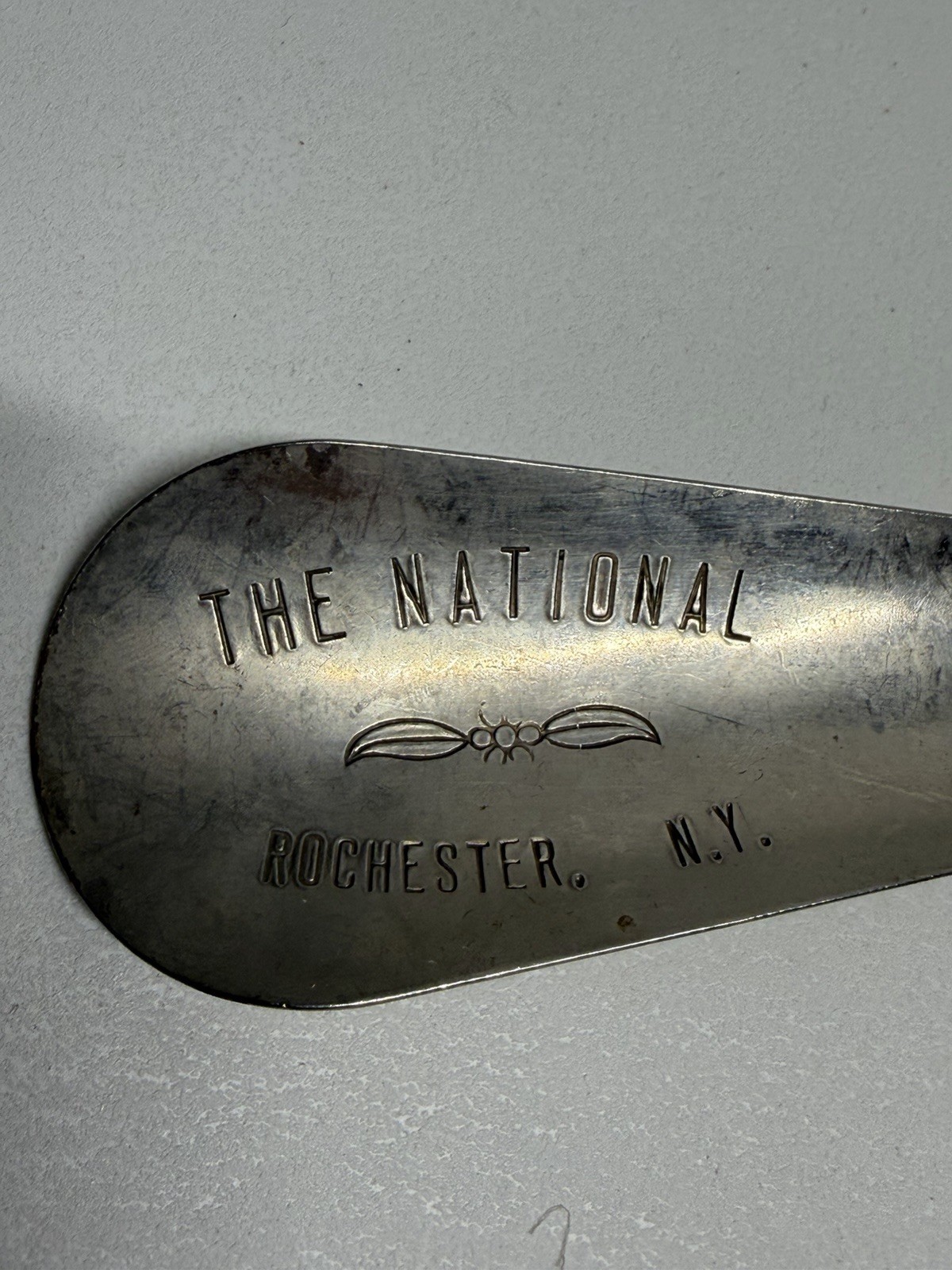 Vintage Metal Shoe Horn Silver Tone The National 4.5 Shoehorn Rochester NY