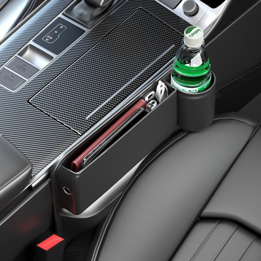 2Pcs Car Side Seat Gap Filler Organizer Set with Phone Holder Cup Holder Black