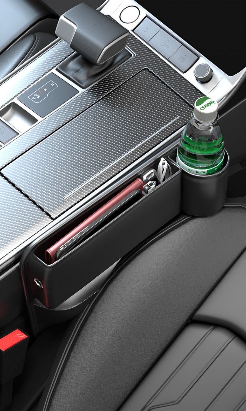 как выглядит 2Pcs Car Side Seat Gap Filler Organizer Set with Phone Holder Cup Holder Black фото