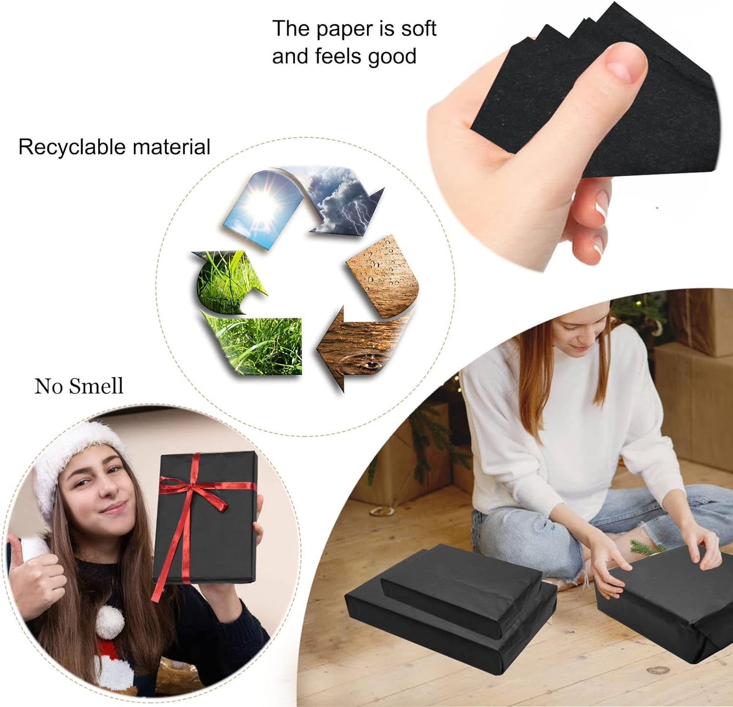 100 Sheets Black Tissue Paper 14 x 20 Inches Black Wrapping Paper Bulk for Wedd