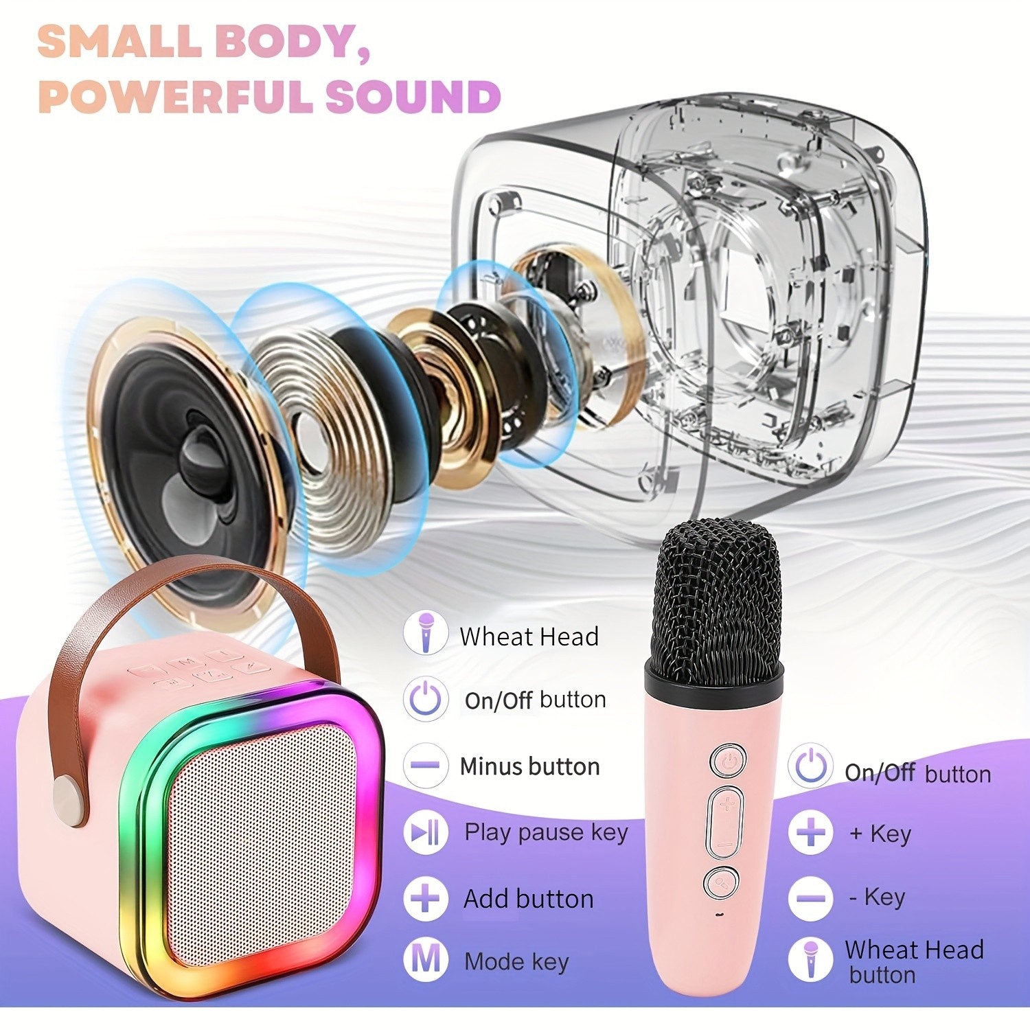 как выглядит Mini Karaoke Machine for Kids  Xmas Gift, Bluetooth Speaker with/ 2 Mics фото