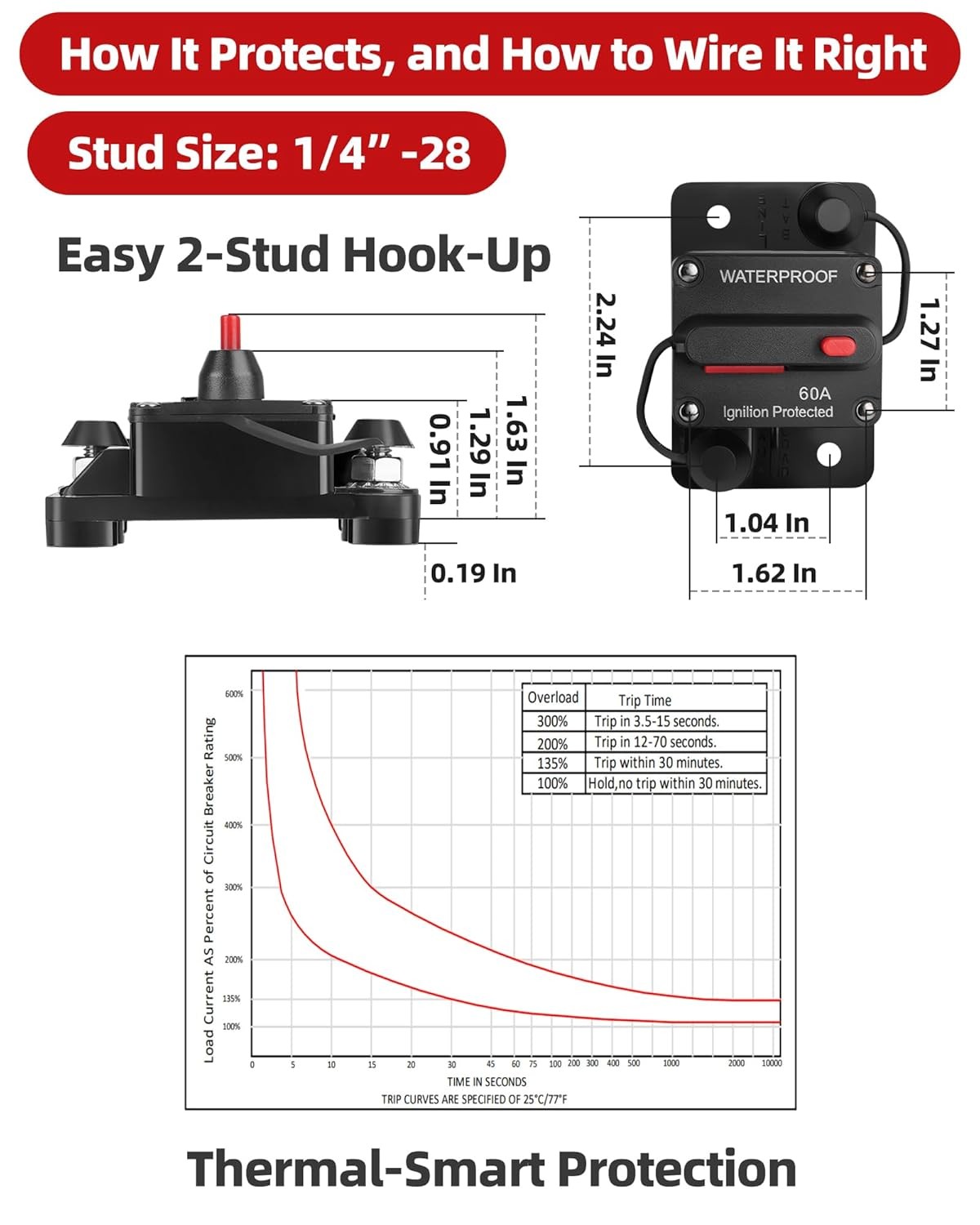 60 Amp Marine Circuit Breaker Switch for Trolling Motor Battery Box, Premium...