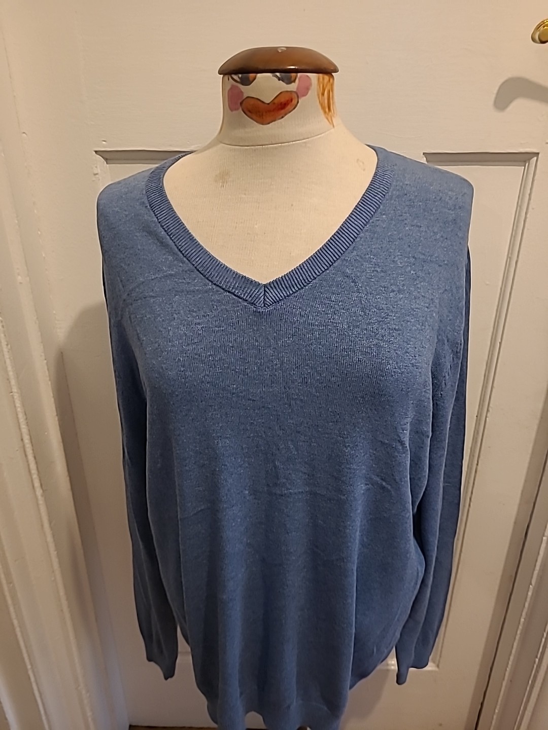 Mens Tu Size L Blue V Neck Long Sleeved Pullover Jumper