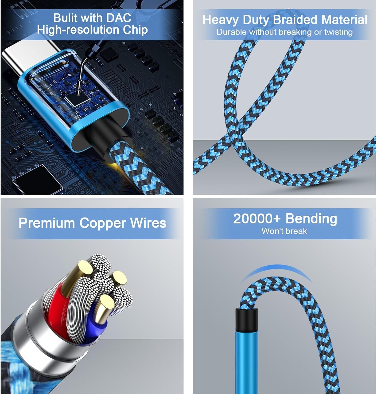 Samsung USB C to 3.5mm Audio Aux Jack Cable,3FT Type C Headphone Blue