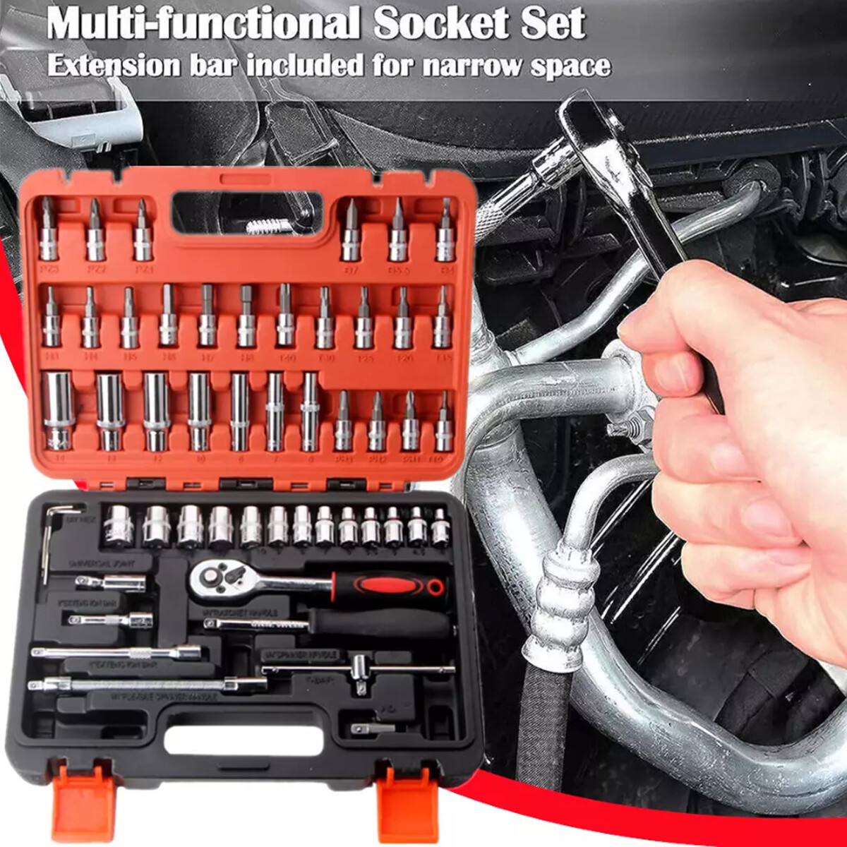53PCS 1/4 Drive Socket Set Ratchet Wrench Bits Spanner Auto Car Repair Tool Kit