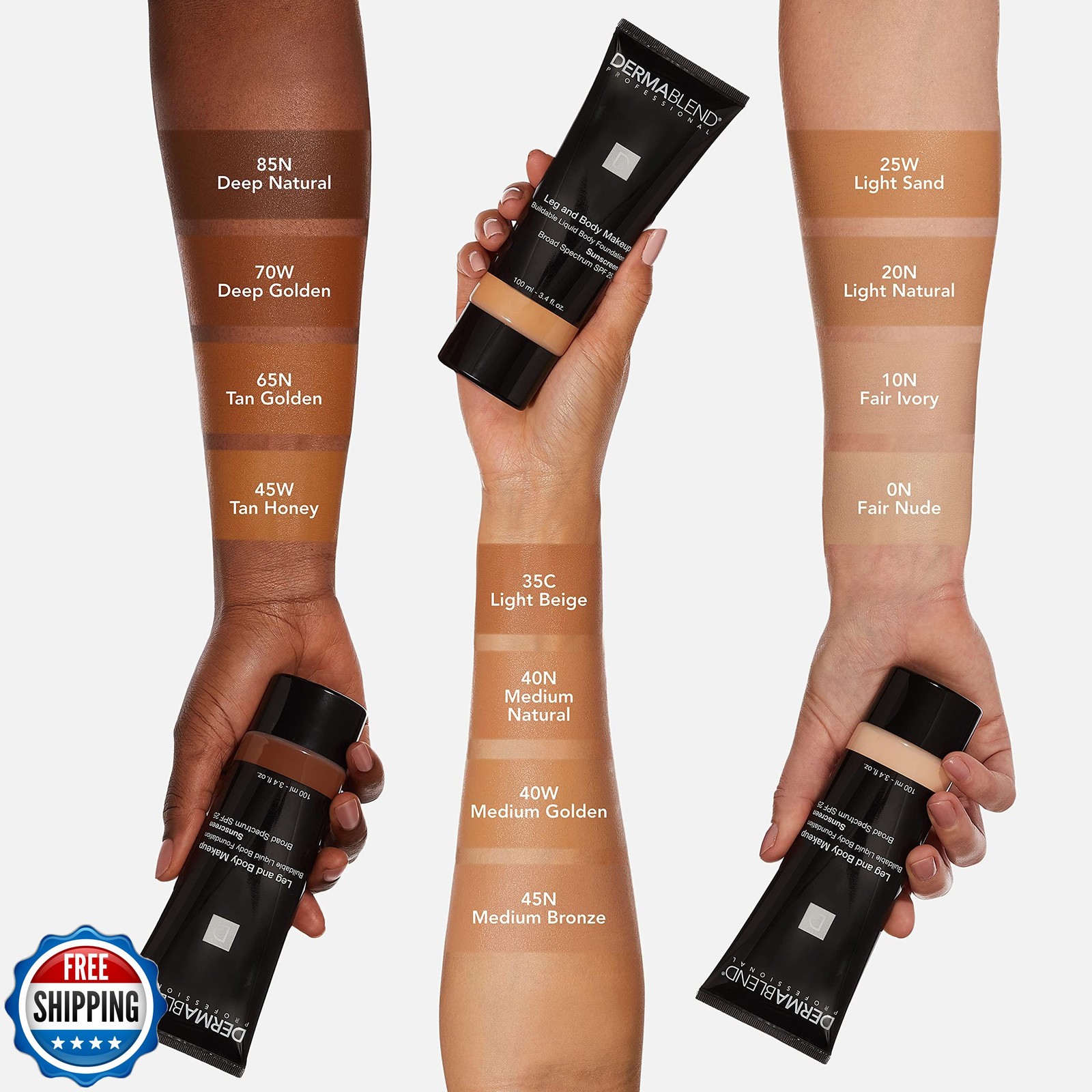 Dermablend Leg and Body Makeup Foundation with SPF 25, 70W Deep G