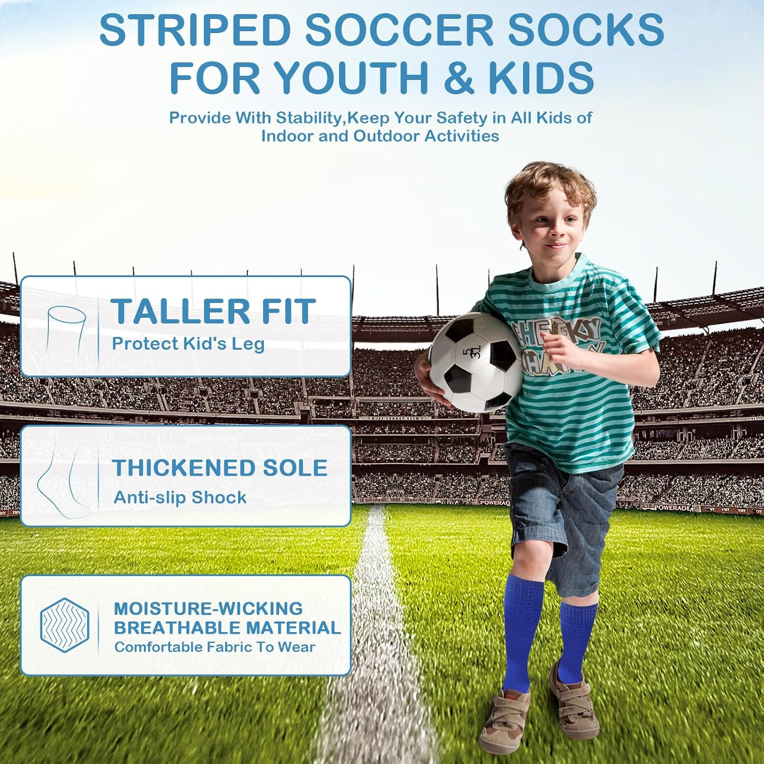 3 Pairs Kids Soccer Socks Striped Knee High Tube Socks Football Uniform Sports S