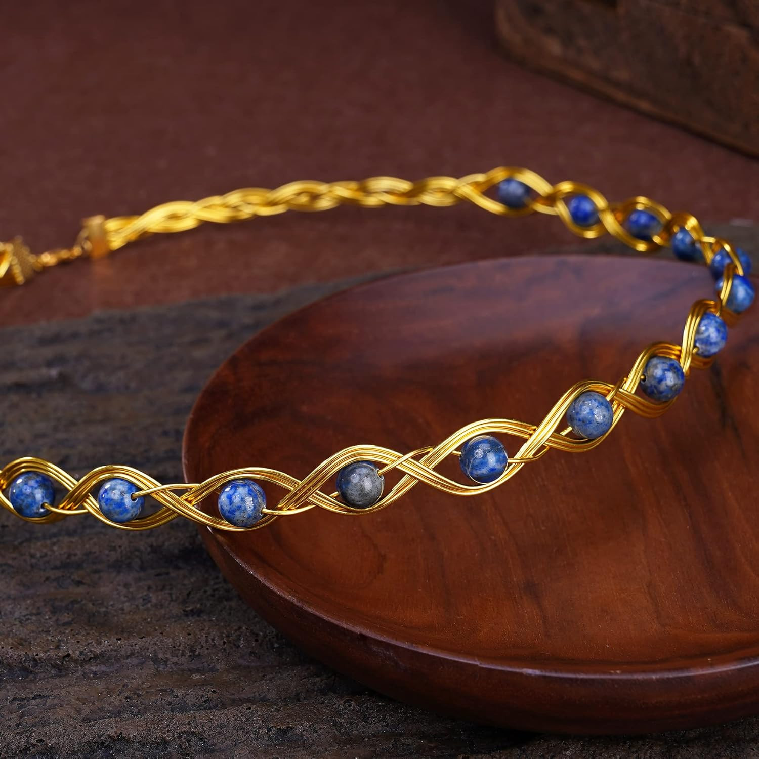 Crystal Celtic Handmade Circlet Crown Gold Fairy Elvish Headband Lapis Lazuli