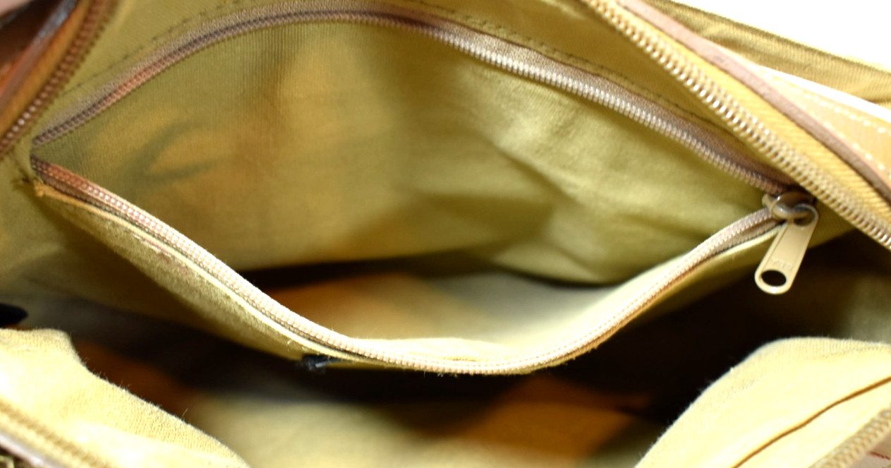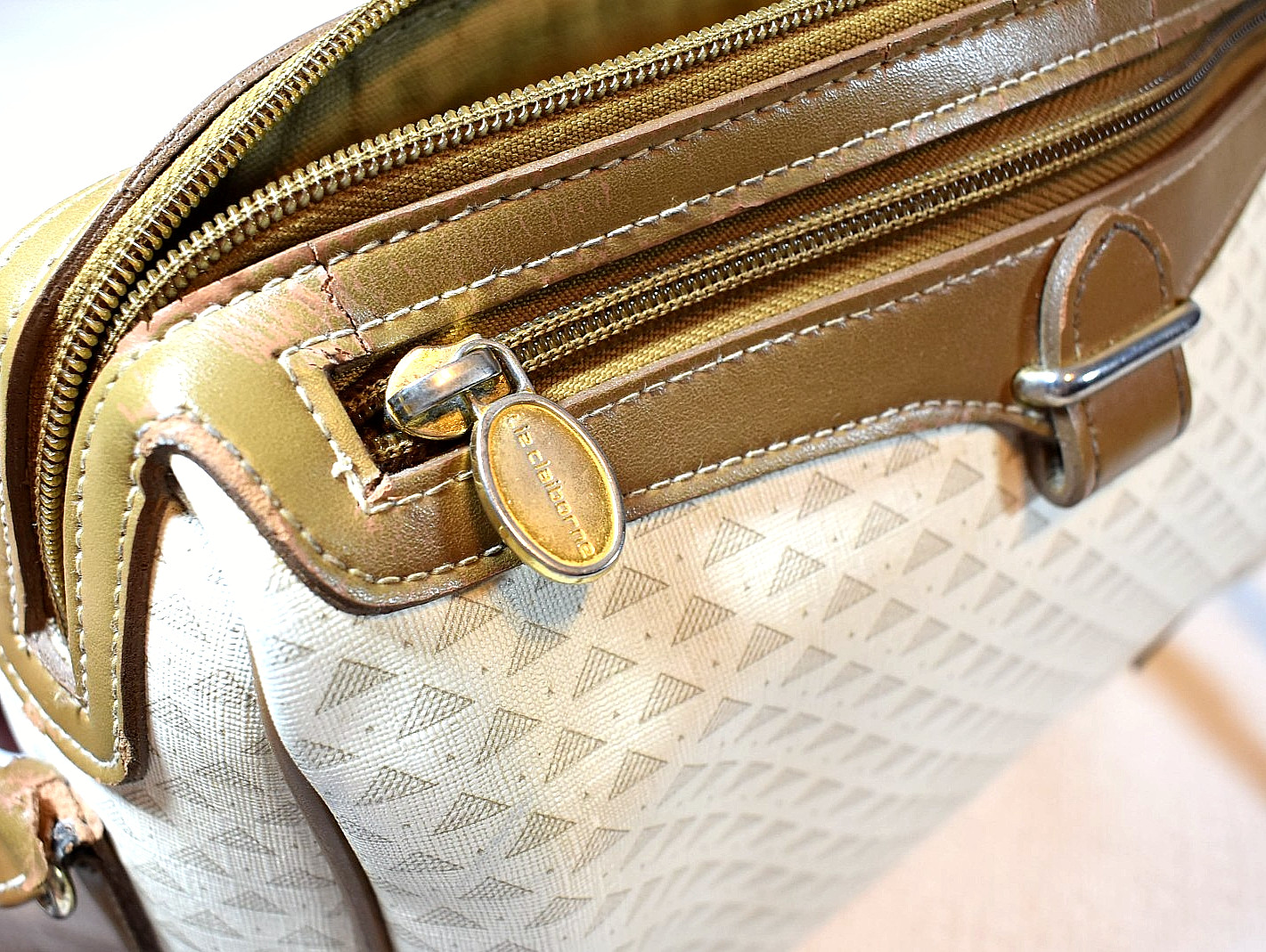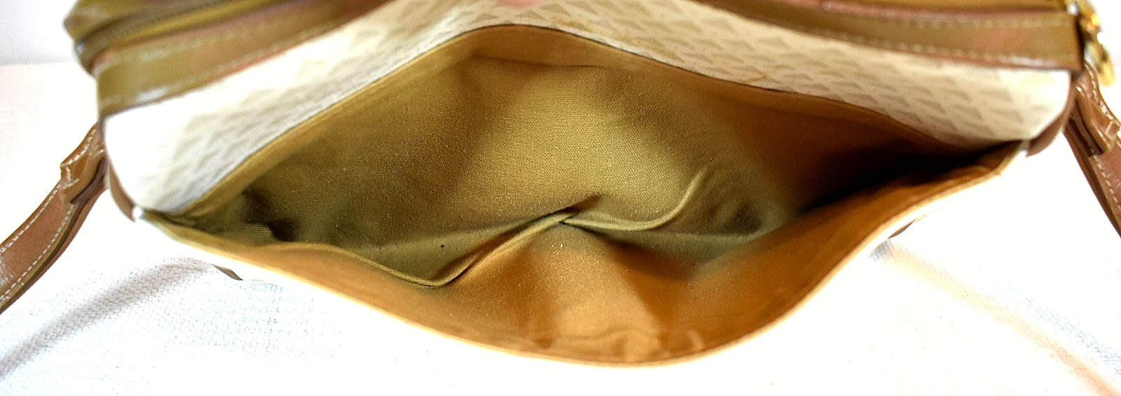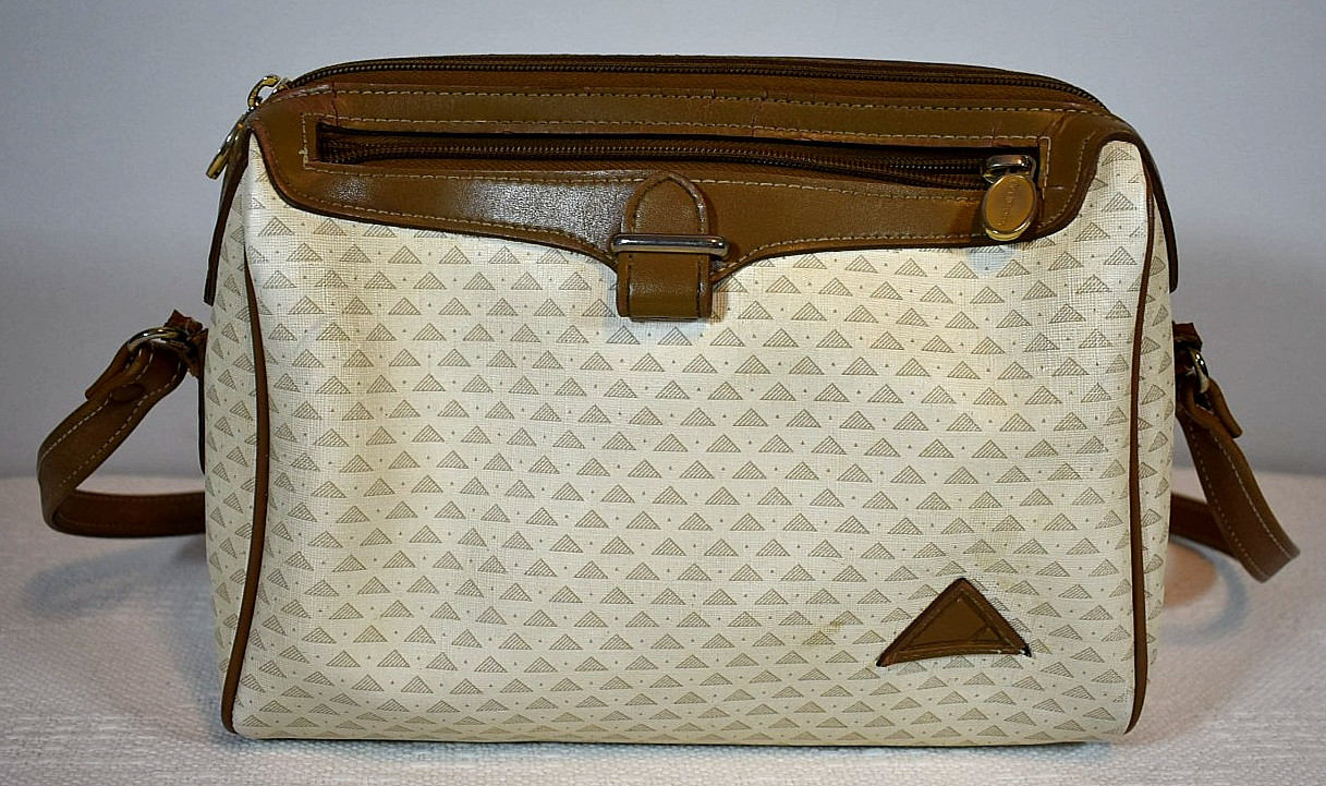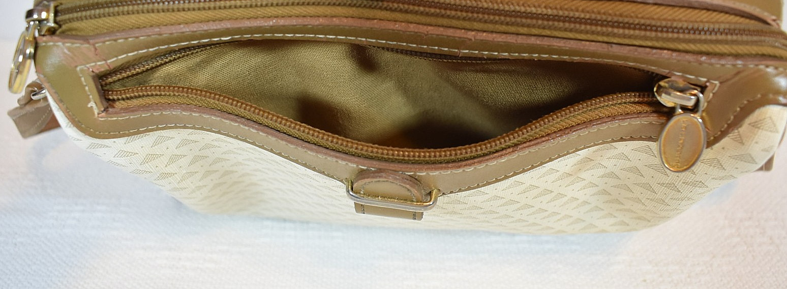 Liz Claiborne VTG 80s Cream/Brown Purse w/Zip Closures, Shoulder Strap Pockets