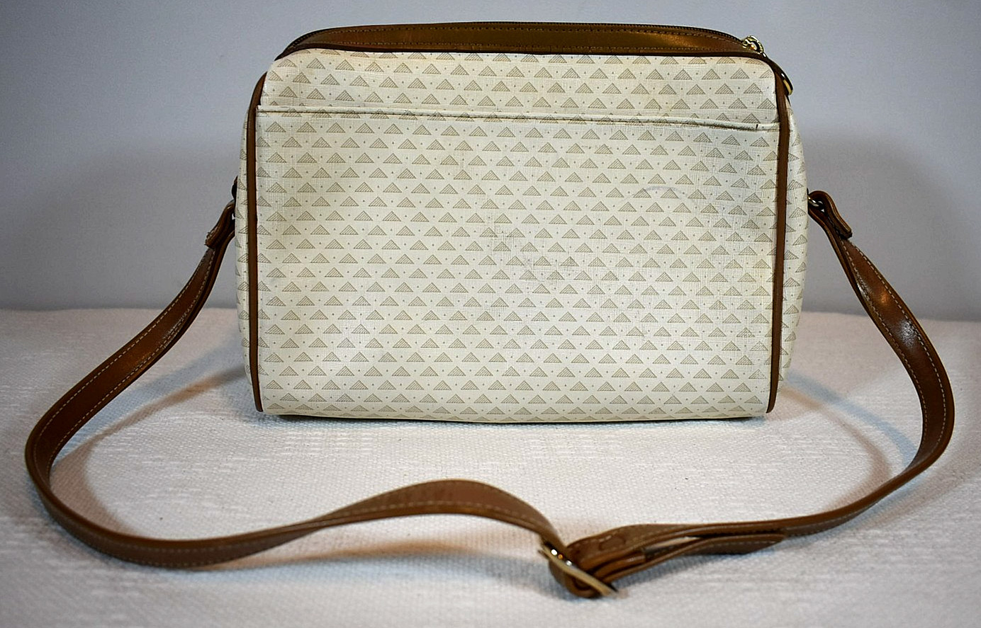 как выглядит Liz Claiborne VTG 80s Cream/Brown Purse w/Zip Closures, Shoulder Strap Pockets фото