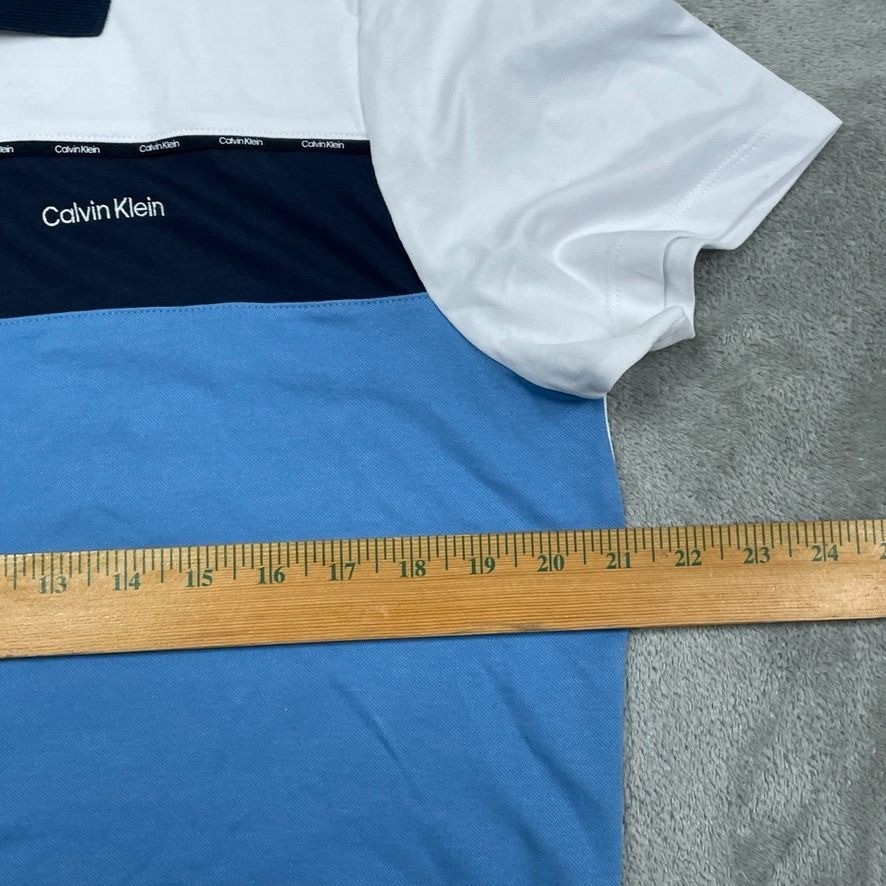 как выглядит Calvin Klein Mens Quick Dry Polo Shirt White/Blue Medium Size Stylish a0881 фото