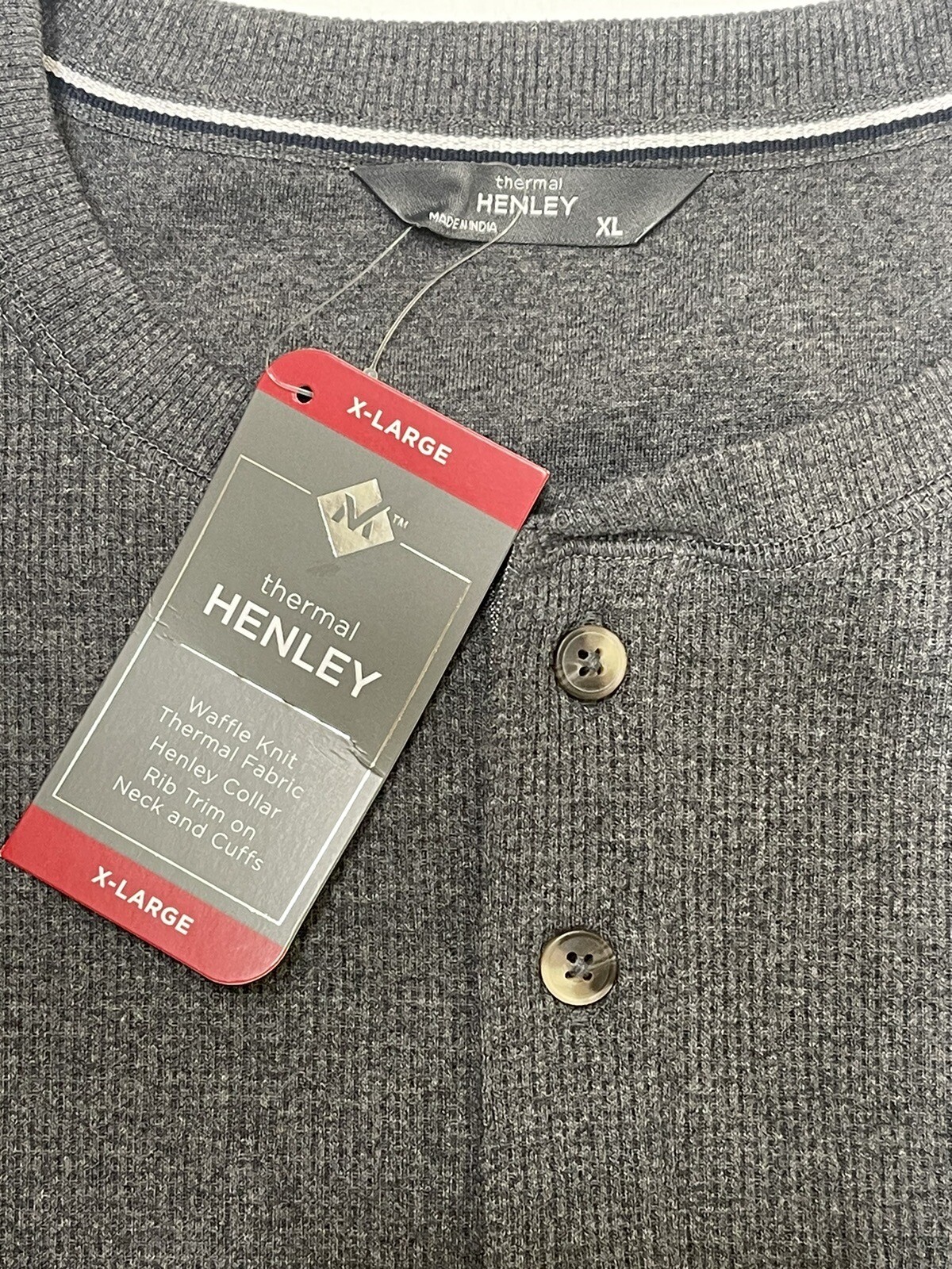 как выглядит Members Mark Mens Gray Thermal Henley Waffle Knit Long Sleeve Comfort T-Shirt XL фото