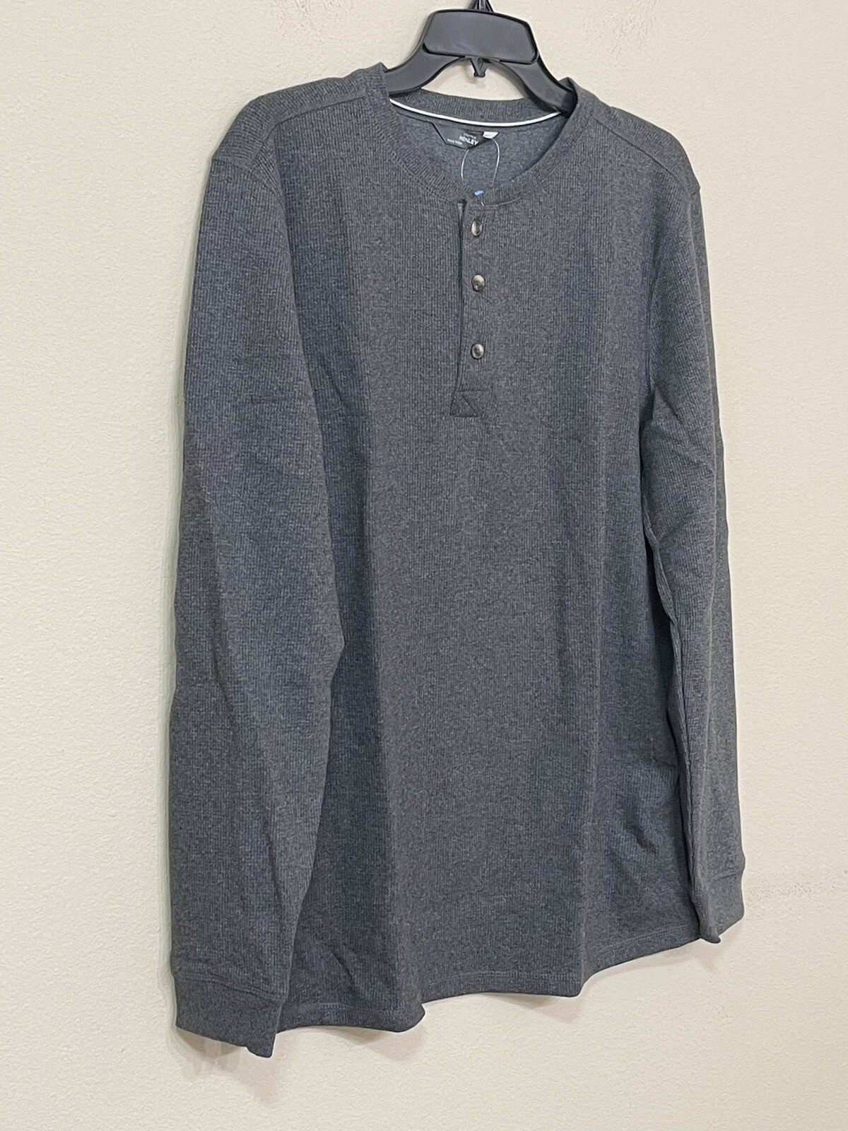 Members Mark Mens Gray Thermal Henley Waffle Knit Long Sleeve Comfort T-Shirt XL
