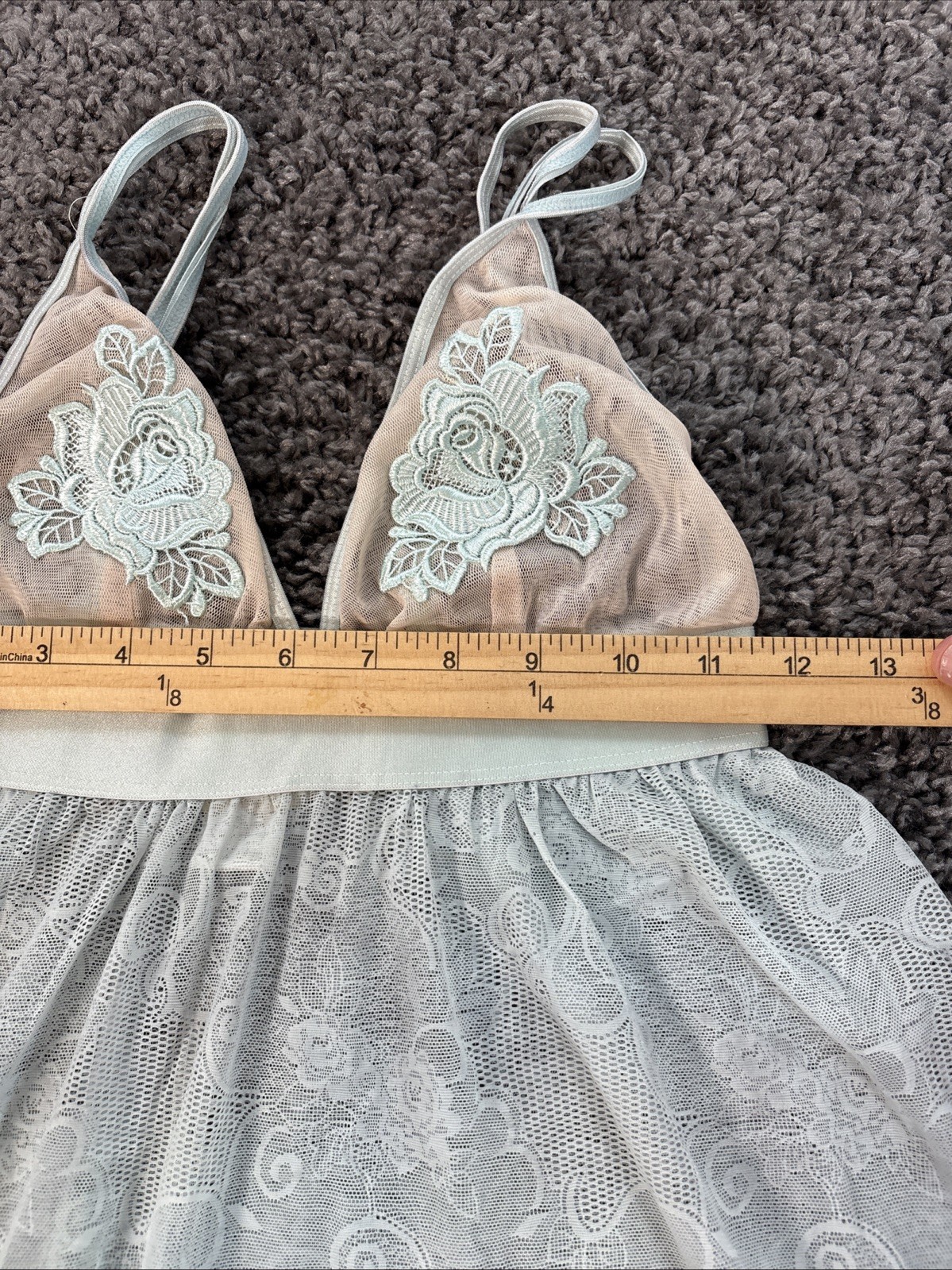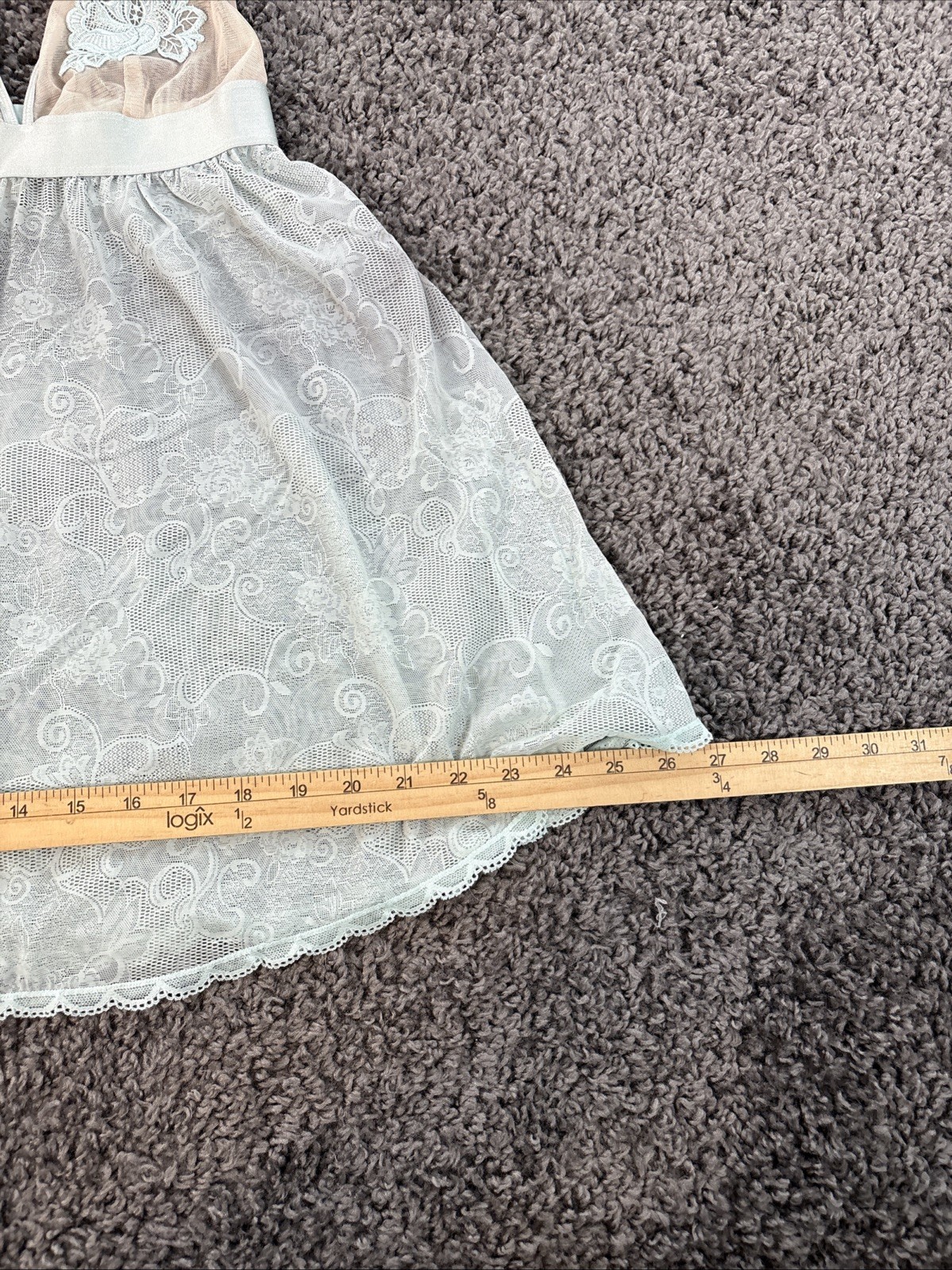 Vintage Cinema Etoile Mini Slip Dress Womens Sz Small Blue Satin Lace