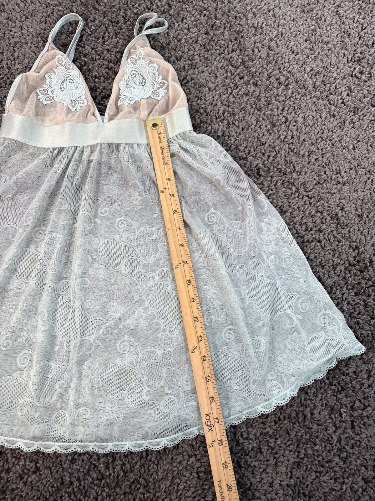 как выглядит Vintage Cinema Etoile Mini Slip Dress Womens Sz Small Blue Satin Lace фото