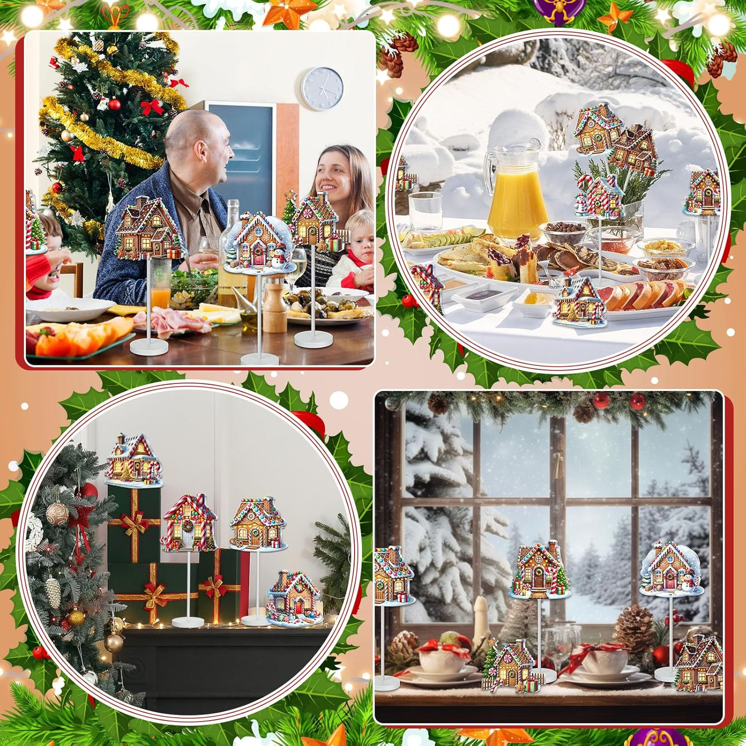 10 Pcs Christmas Gingerbread House Table Decoration Xmas Wooden Candy Table Cent