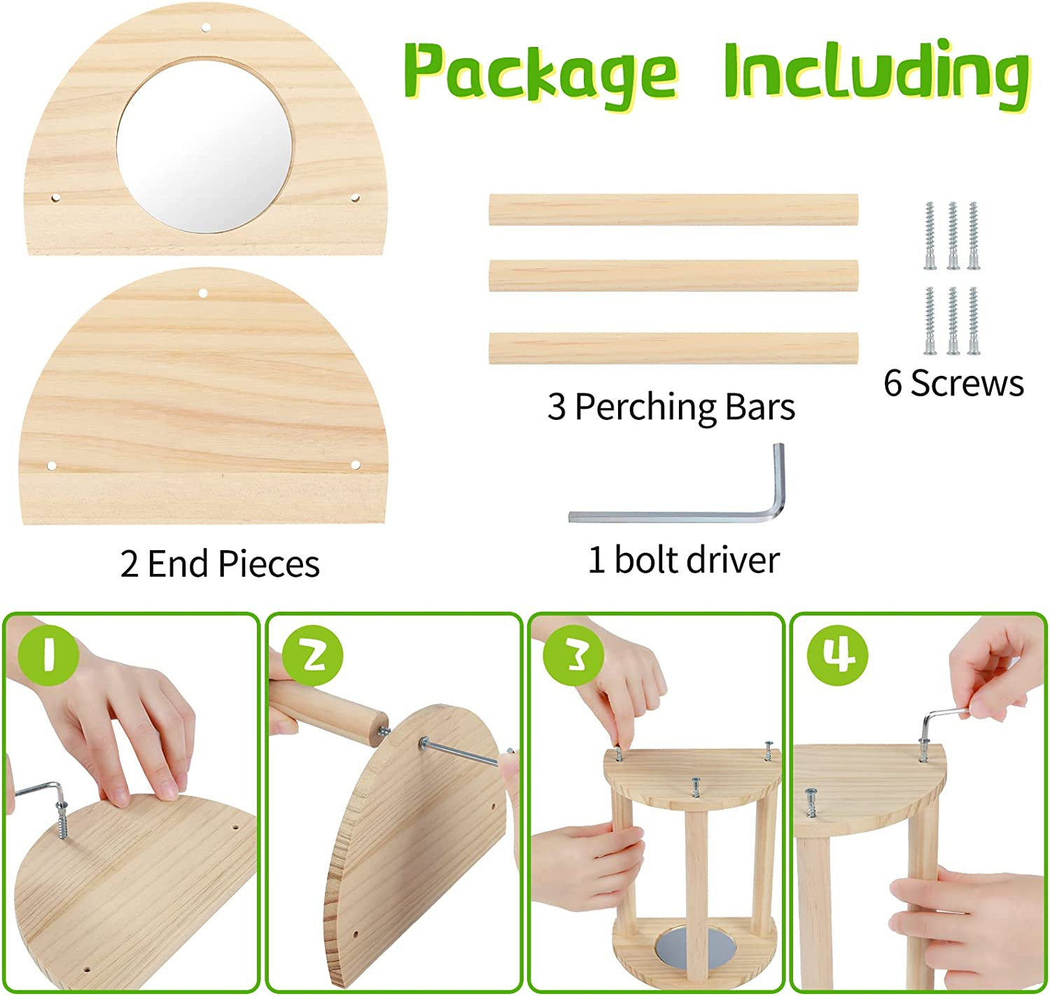 как выглядит Pine Chicken Perch with Mirror, Strong Chick Jungle Gym Roosting Bar, Chicken To фото