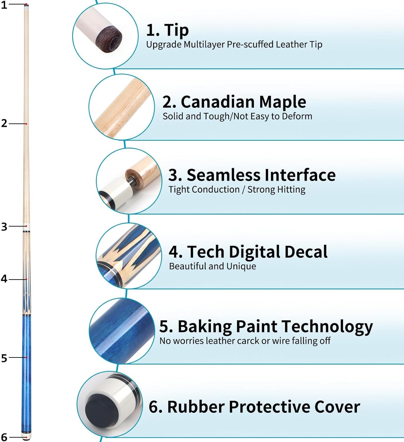 Professional Pool Cue Stick Set 58 Inch Canadian Maple Wood Billiard Sticks Game