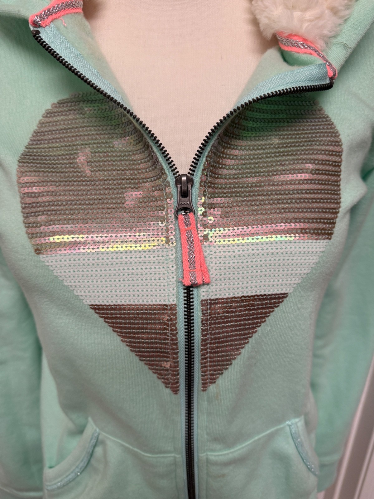 как выглядит Cat Jack Girl X-Large 14-16 Full Zip Hoodie Jacket Pile Lined Hood Sequins 3 фото