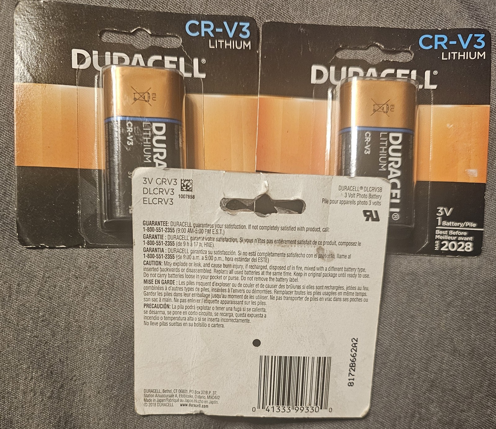3x Duracell CR-V3 Lithium 3V Digital Camera Best before 2028