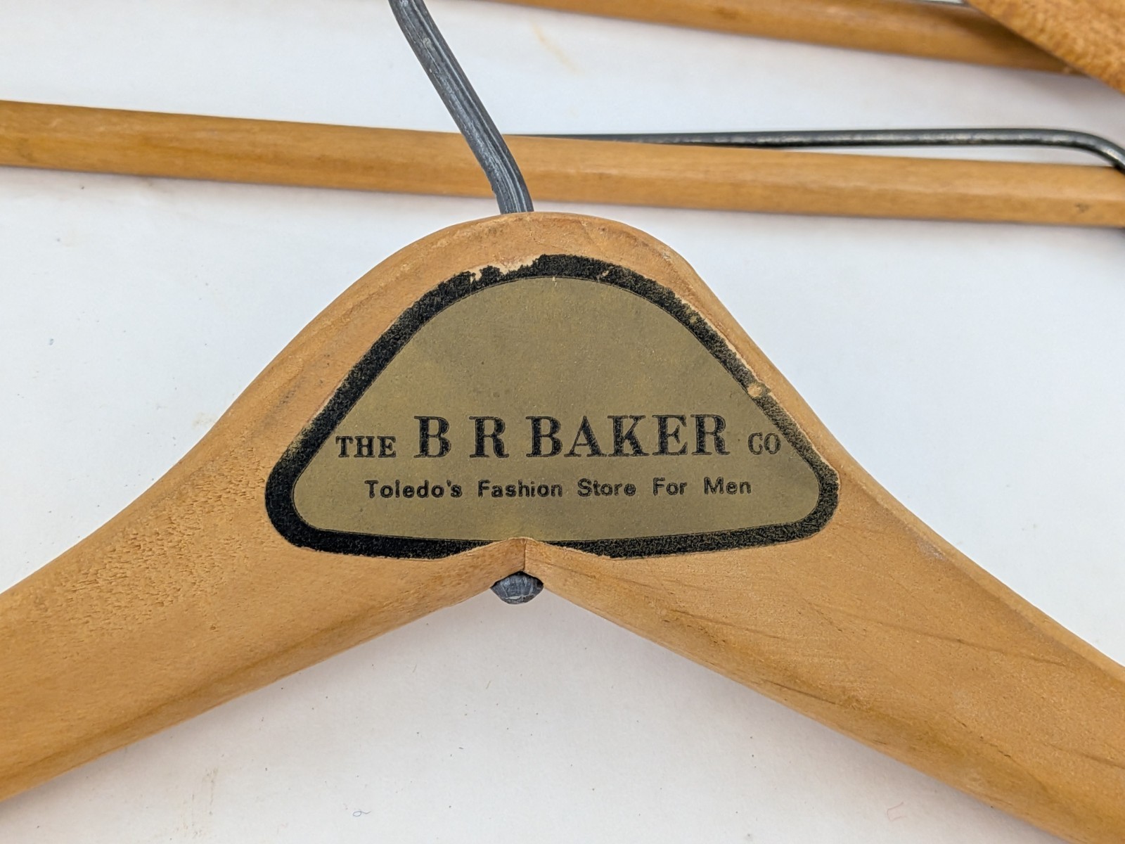 Vintage Wishbone Wooden Advertising Clothes Hanger B R BAKER Toledo OH Pants