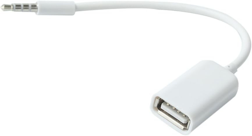 3.5mm Male AUX Audio Plug Jack to USB 2.0 Female Converter Cable Cord EN White