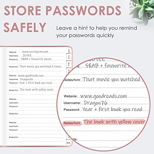 Elegant Password Book with Alphabetical Tabs Medium 5.2 x 7.6 Inch Rose Gold