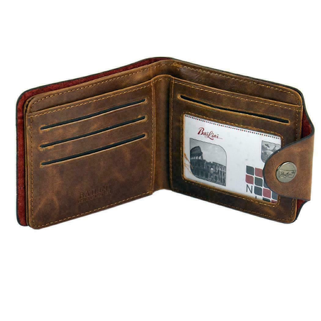 Men's Leather Slim Wallet With ID Window Bifold Credit Card Holder Front Pocket