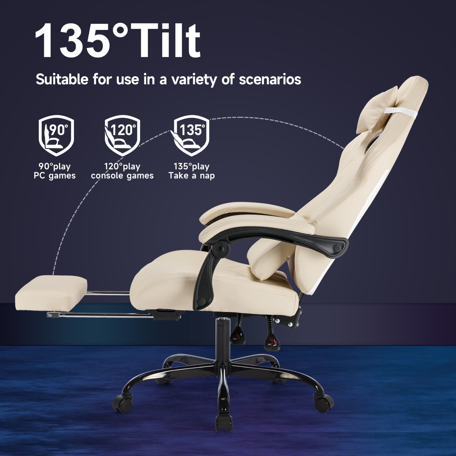 Gaming Chair with Footrest and Massage Lumbar Support, Ergonomic Computer Gamer